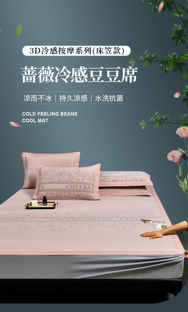 小牛席业 2026新款蔷薇冷感豆豆席系列凉席席子-床笠款 蔷薇-粉色