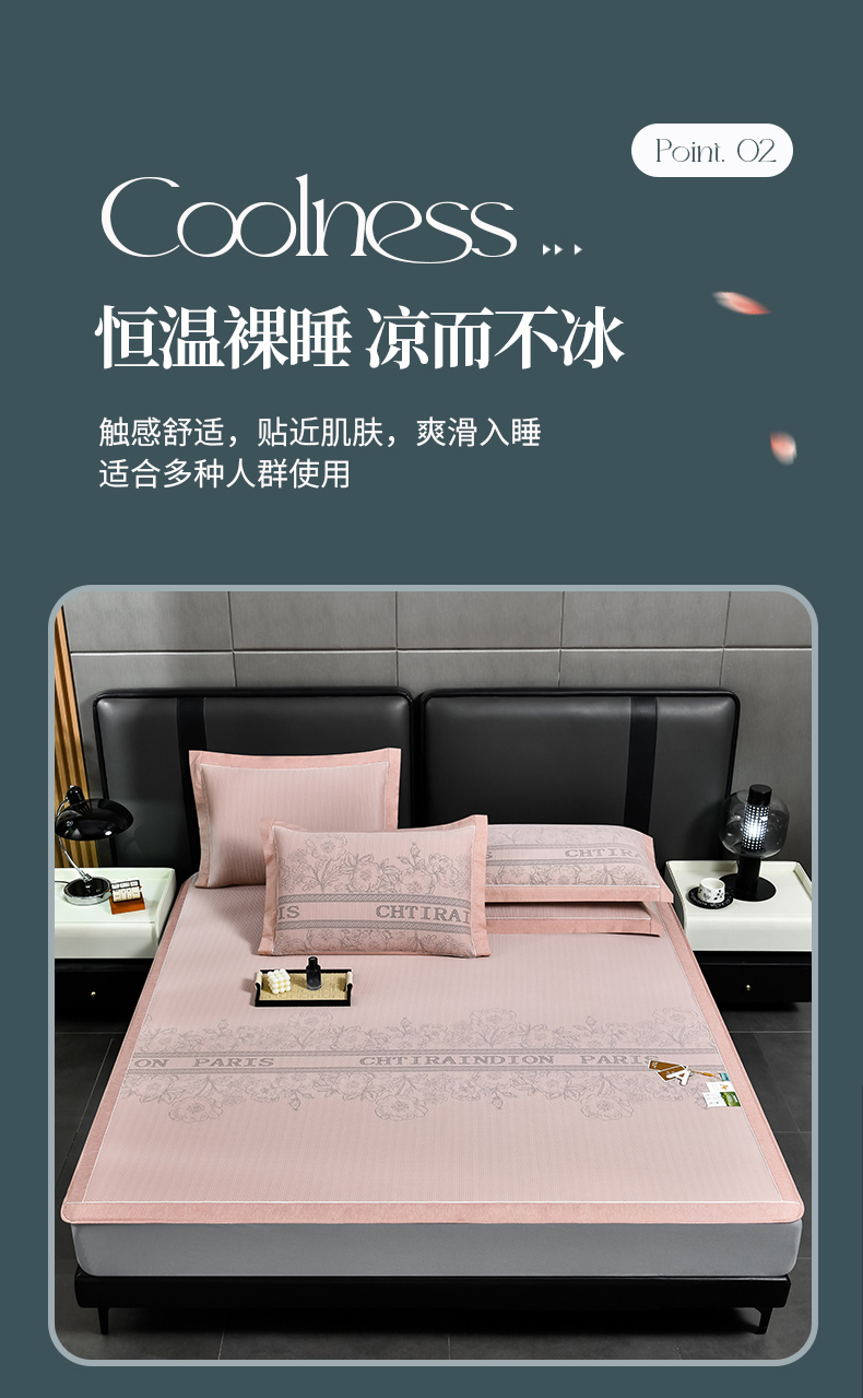 (总)小牛席业 2026新款PE凉感轻奢赫本提花冰丝席凉席席子,粉色,灰色,蓝色,抹茶,香槟