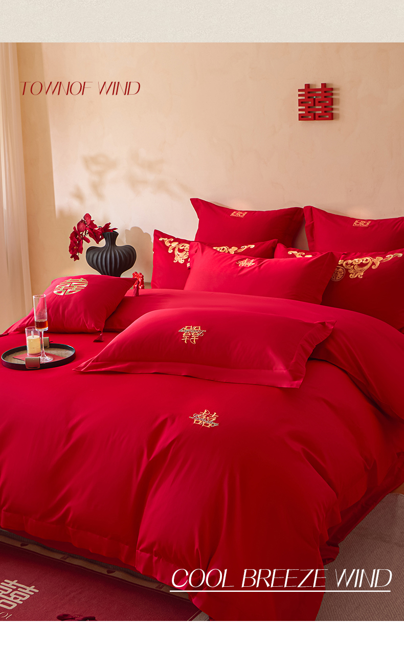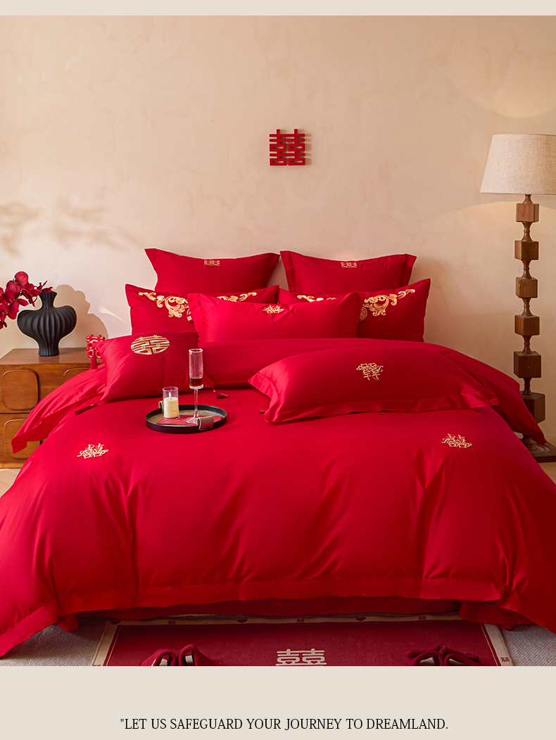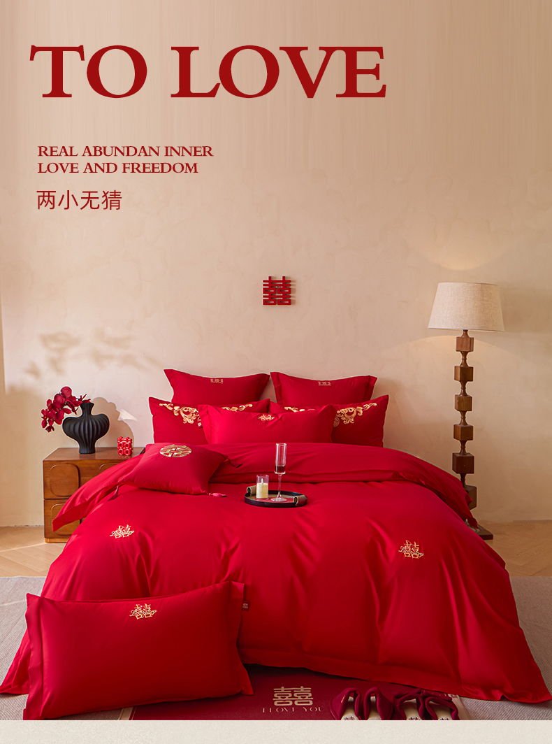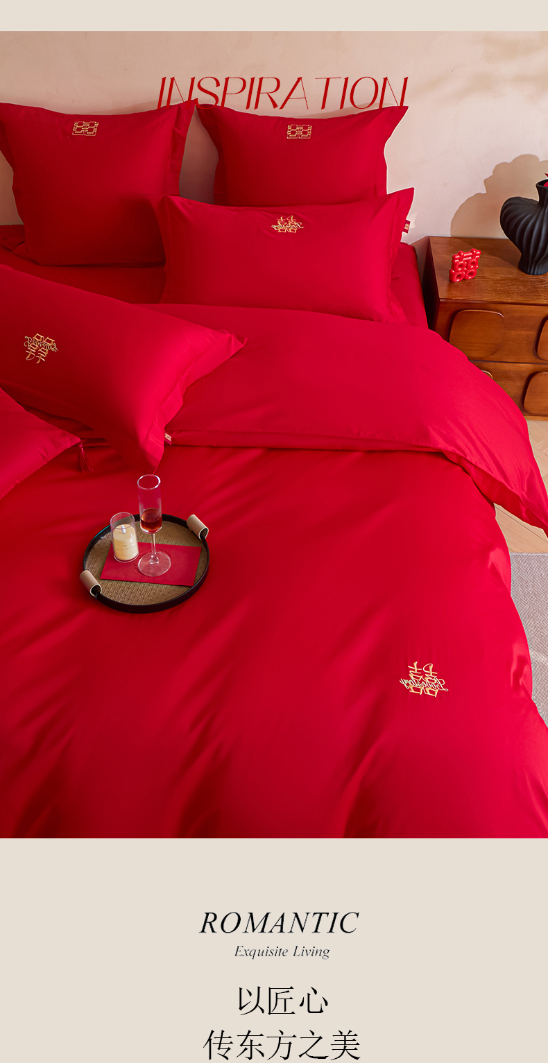 当前位置: 91家纺网 > 商品网购 > 床品套件 > 多件套 > 多件套 > 东方合美(原:皇家传奇) 2026新款长绒棉轻奢婚庆四件套 两小无猜