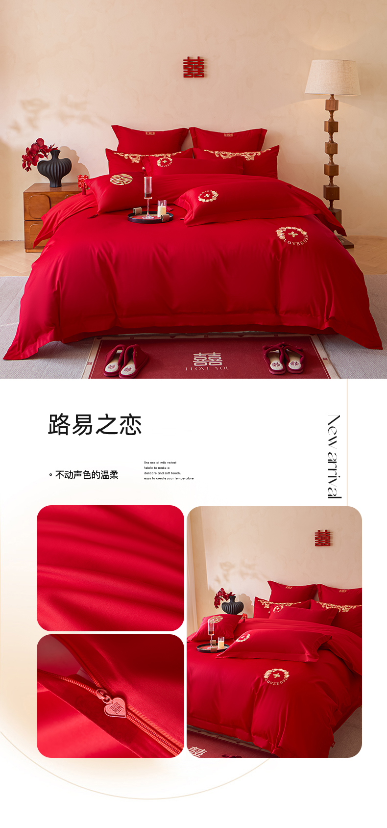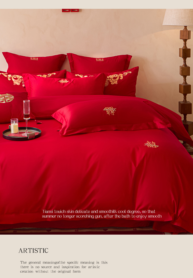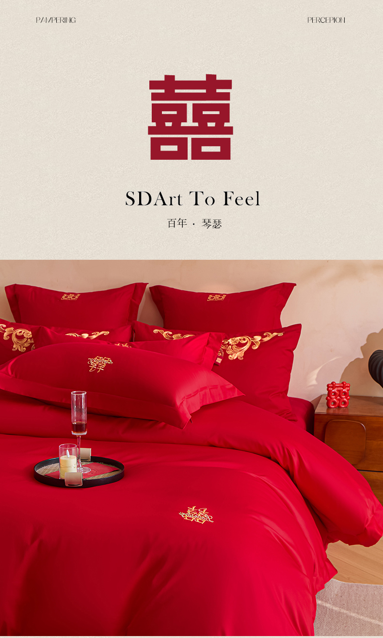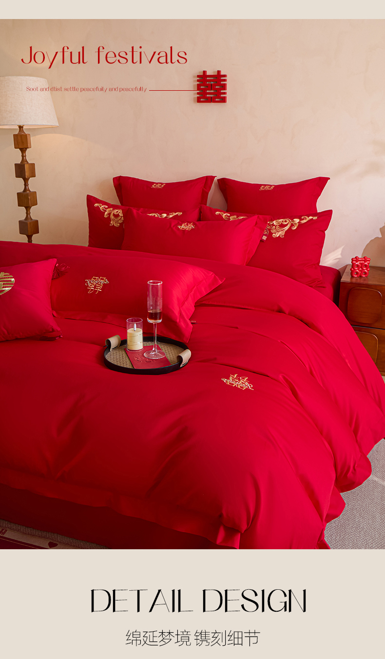 当前位置: 91家纺网 > 商品网购 > 床品套件 > 多件套 > 多件套 > 东方合美(原:皇家传奇) 2026新款长绒棉轻奢婚庆四件套 两小无猜
