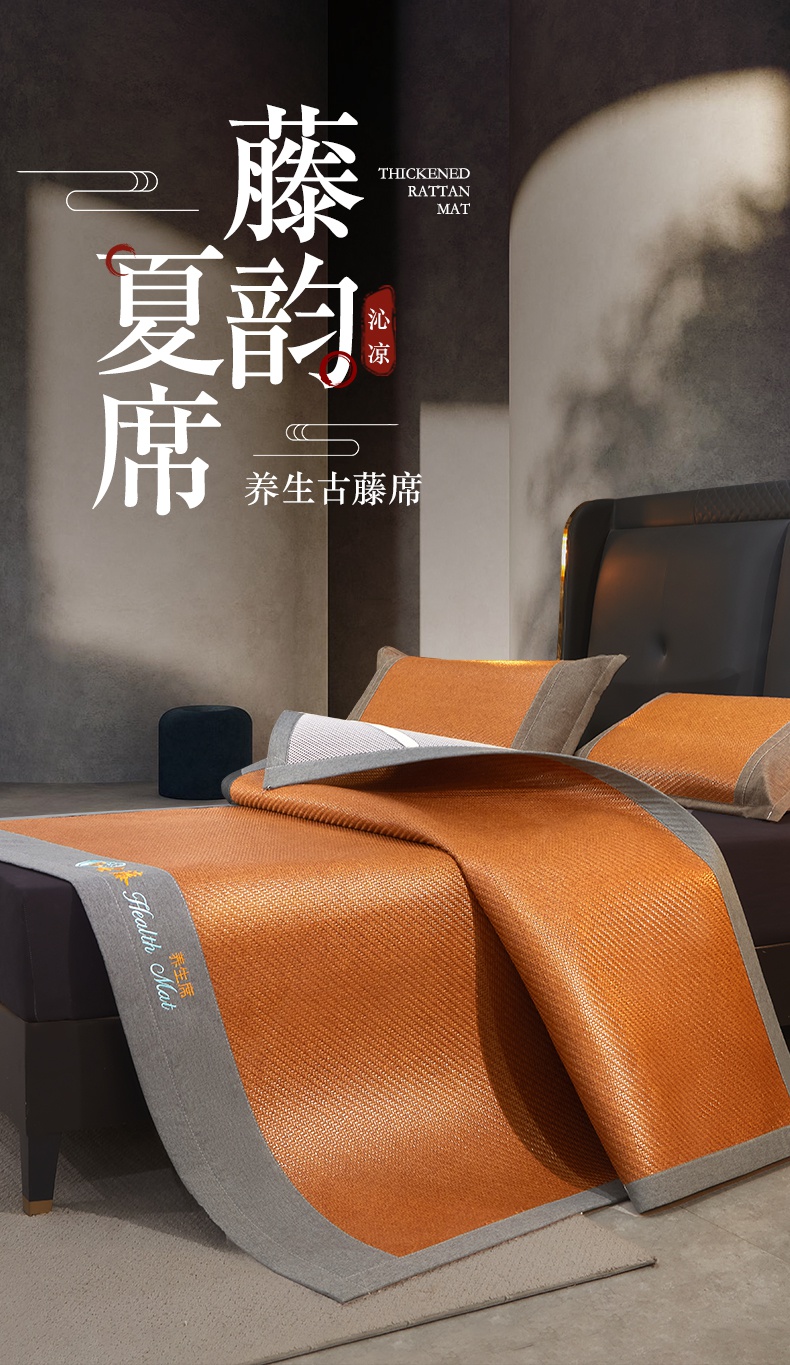 商品名称:(总)yyds网供 2026新款养生古藤席空调席印尼藤席加粗加厚高档冰藤席凉席竹席空调席直播三件套
