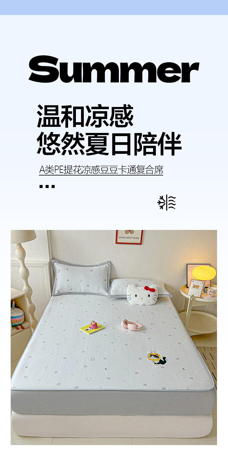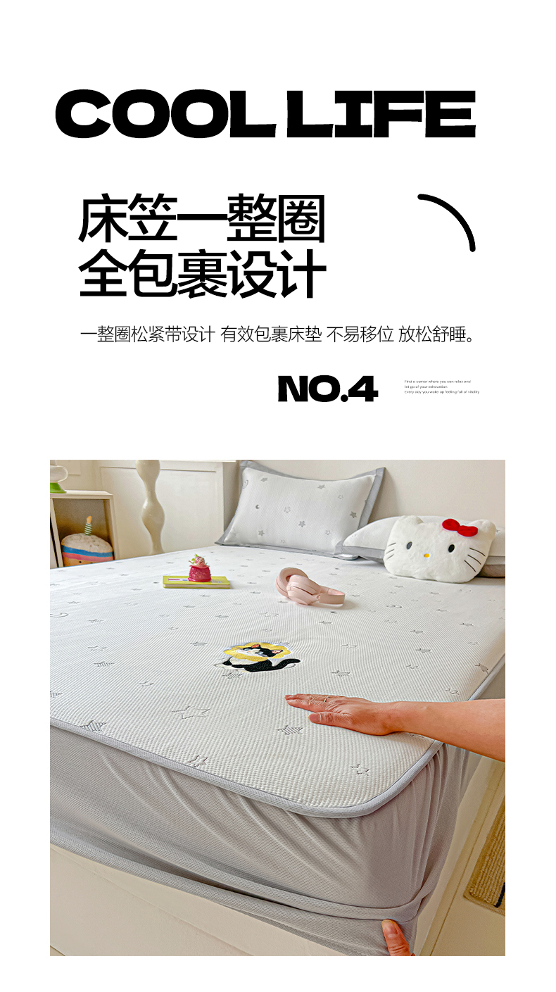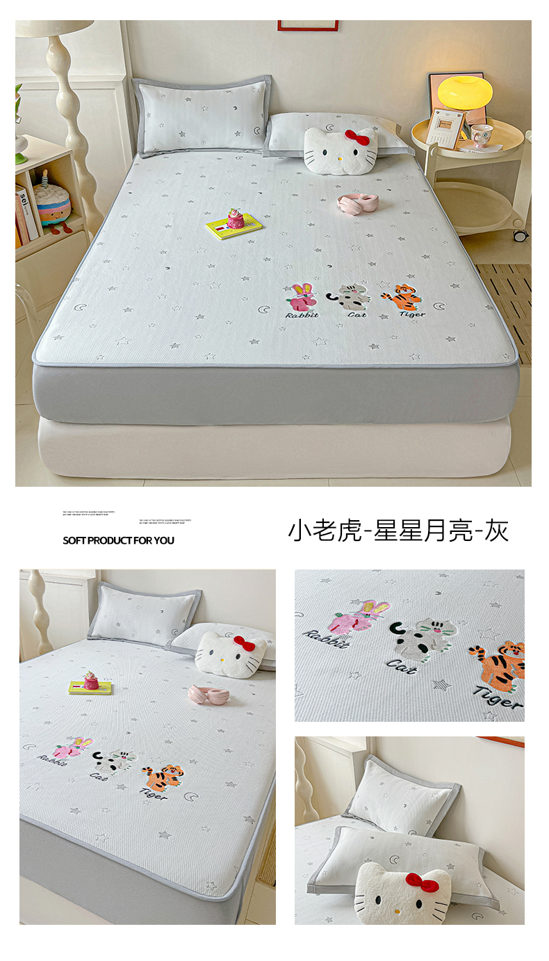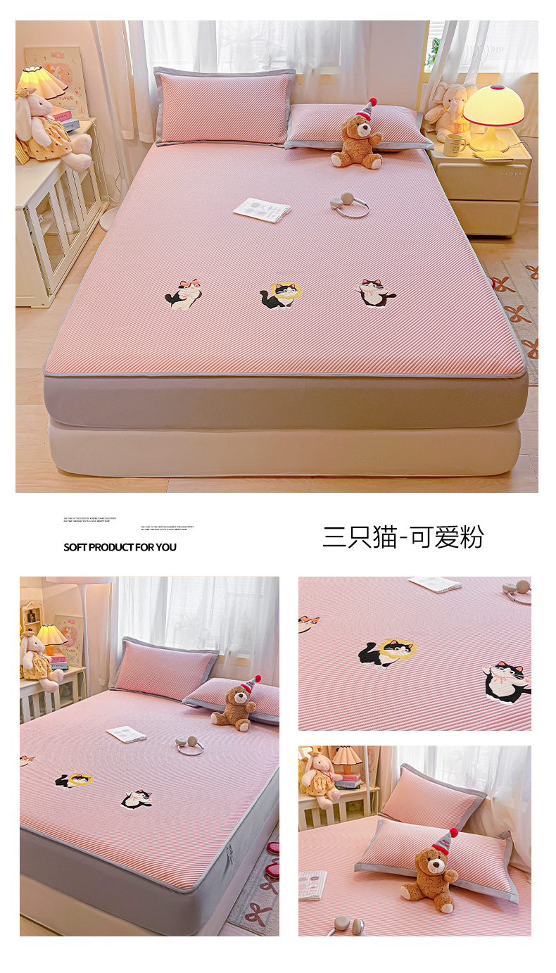 当前位置: 91家纺网 > 商品网购 > 床上用品 > 凉席 > 凉席套件 > 多乐家纺 2026新款星辰系列PE提花凉感豆豆卡通刺绣大包边复合凉席 花朵猫-小草莓(床笠款)