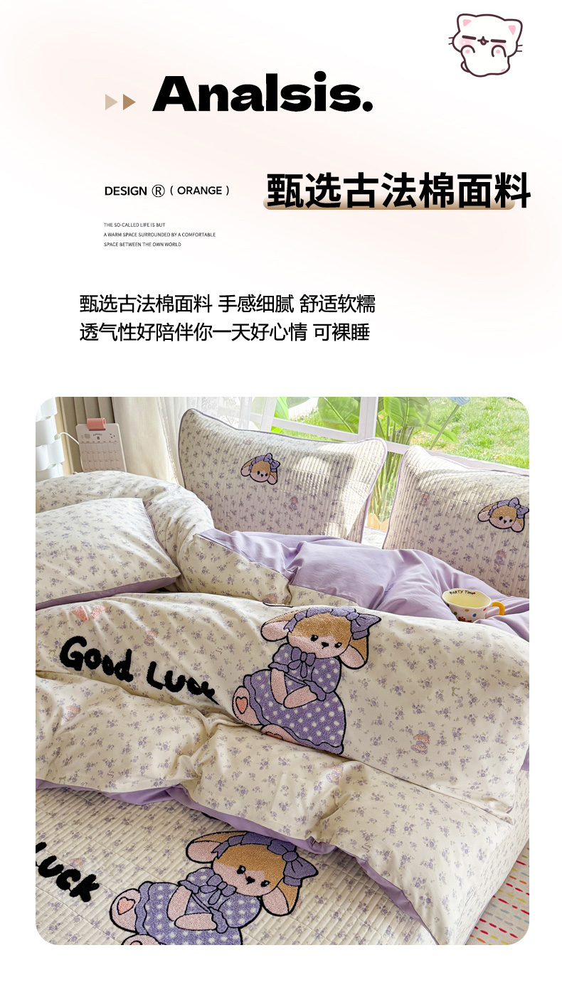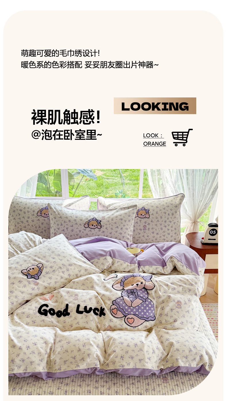 当前位置: 91家纺网 > 商品网购 > 床品套件 > 四件套 > 化纤普通四件套 > 恋佳居 2026新款毛巾绣古法棉床笠床盖四件套 迷雾紫兔