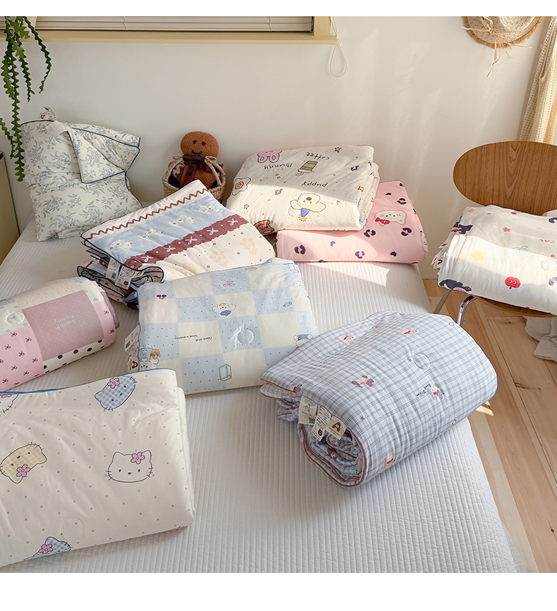 (总)暖生活 2026新款全棉水洗棉毛巾绣夏被春秋被四件套,组合图仅做展示不可下单,KT日记,蓝鲸梦,墨镜小狗,下雨天,小企鹅,阅读星人