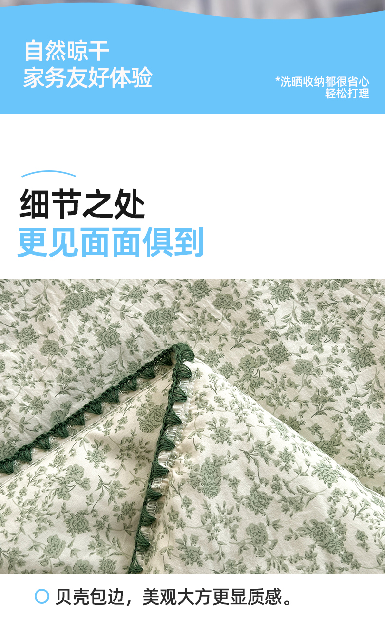 商品名称:锦尚坊被芯馆 2026新款100%棉花双层纱夏被新疆棉花空调被可机洗夏凉被绣边踩棉工艺 花海--绿