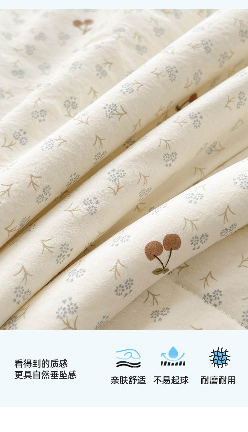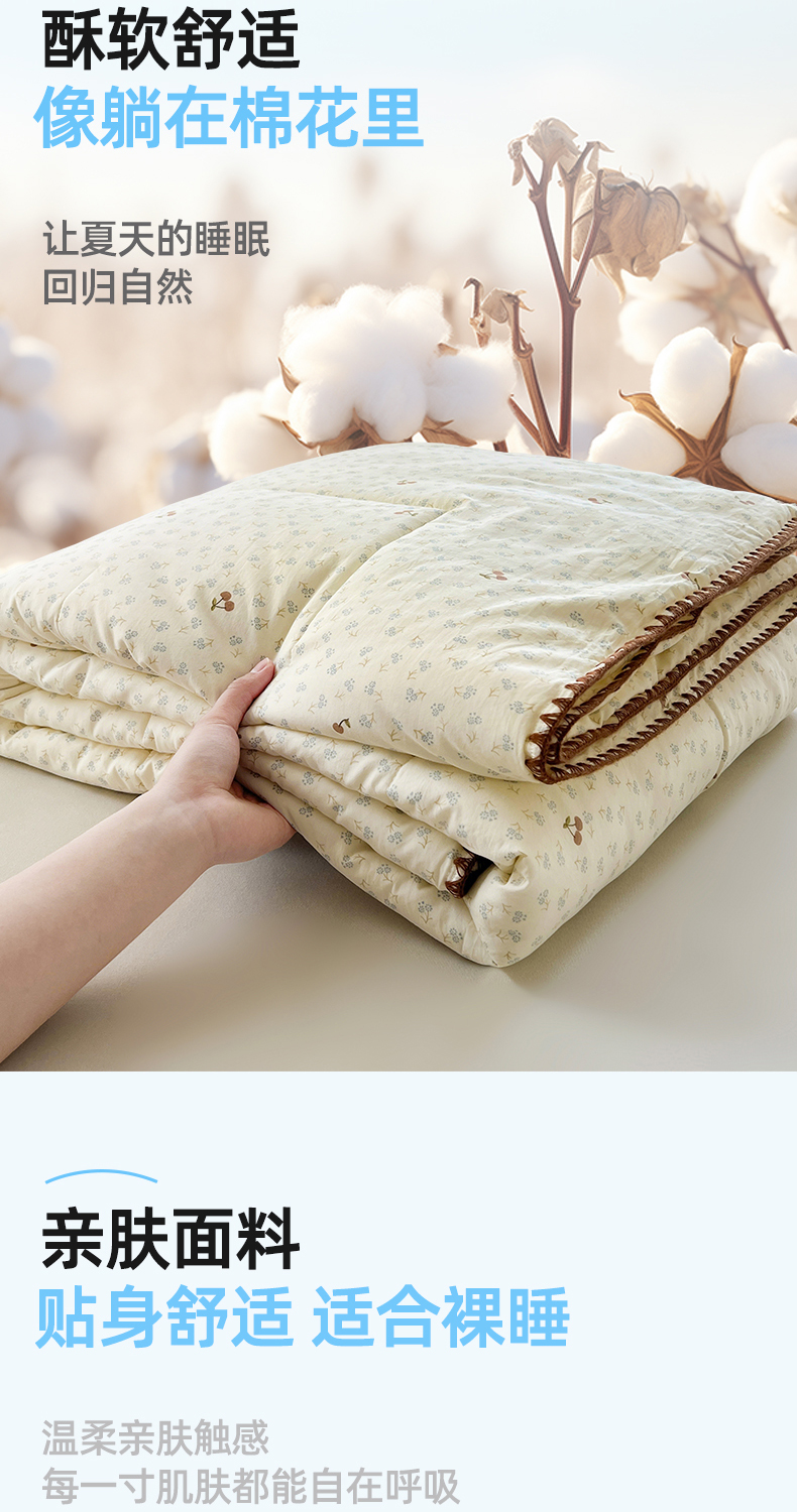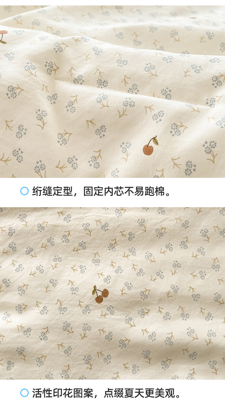 商品名称:阳光被业 2026新款100%棉花双层纱夏被新疆棉花空调被可机洗夏凉被绣边踩棉工艺 富贵樱桃