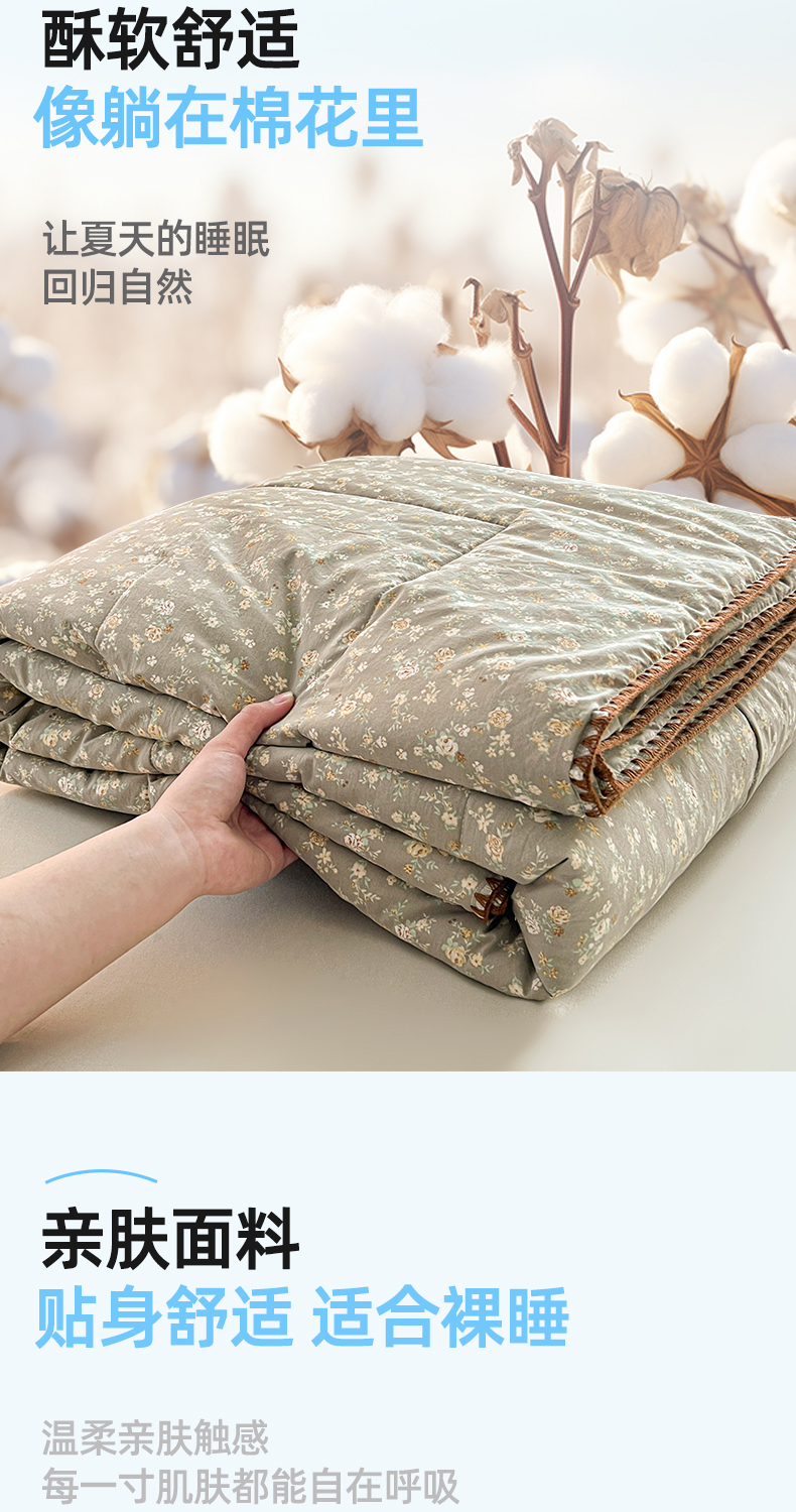 商品名称:阳光被业 2026新款100%棉花双层纱夏被新疆棉花空调被可机洗夏凉被绣边踩棉工艺 寻觅花香