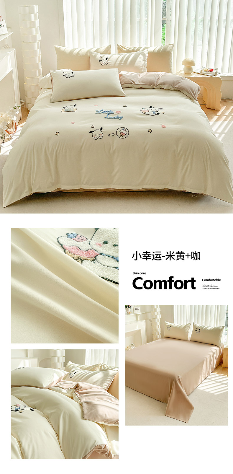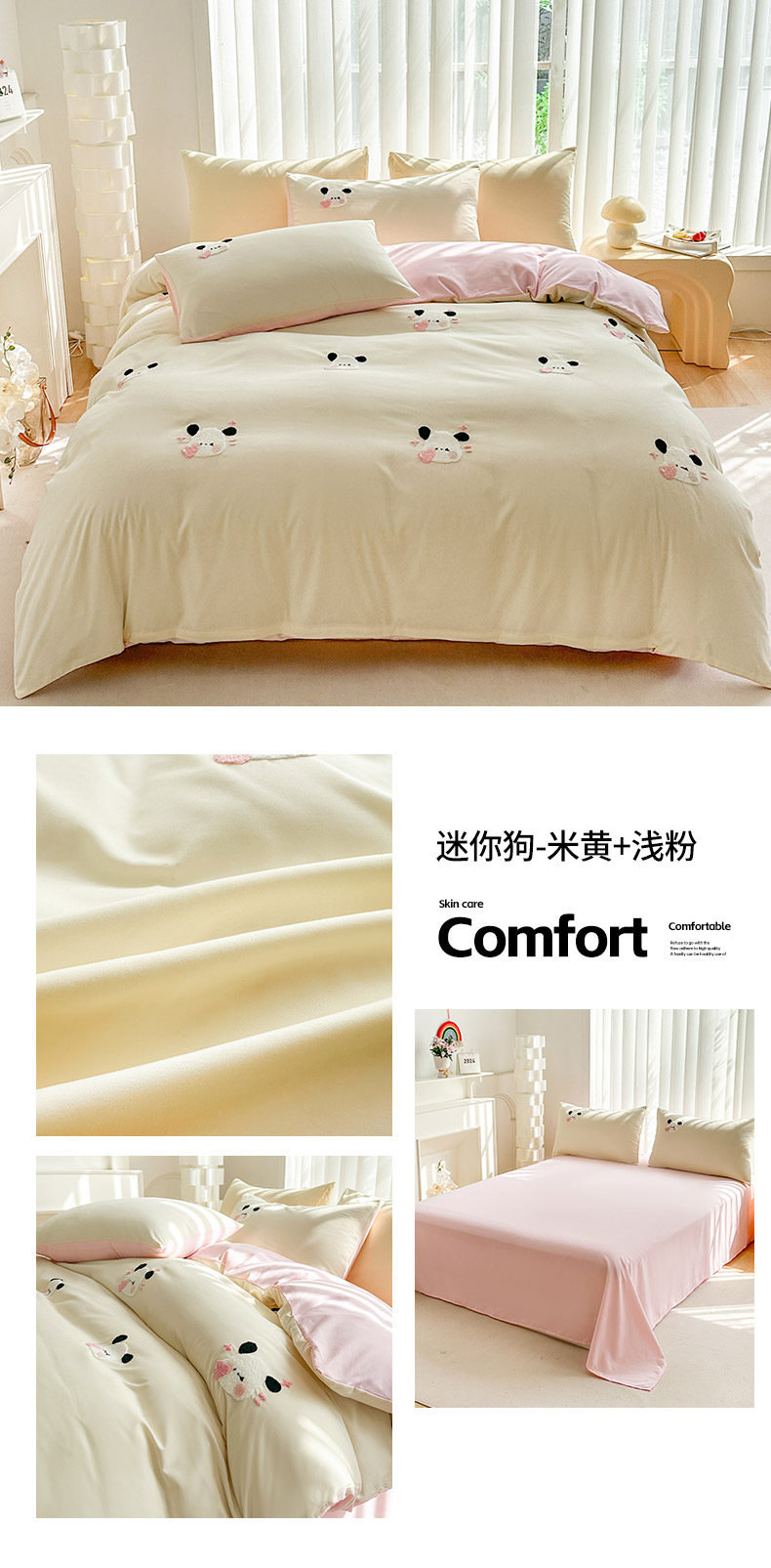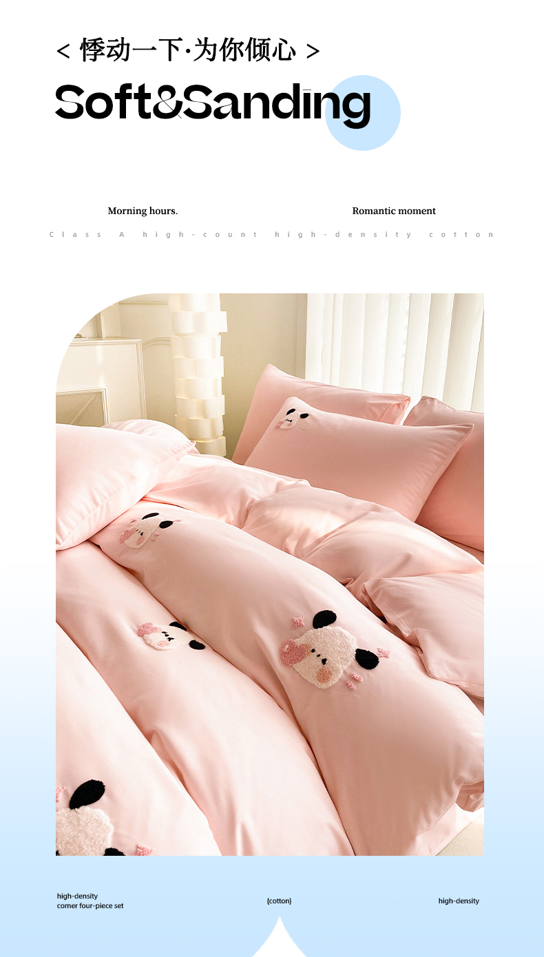 (总)眷恋家纺 2026新款卡通毛巾绣水洗棉四件套,迷你狗-米黄+浅粉,迷你狗-浅粉,迷你狗-天蓝,小幸运-米黄+咖,小幸运-浅粉+紫,小幸运-天蓝,熊猫-米黄+云川绿,熊猫-奶油黄