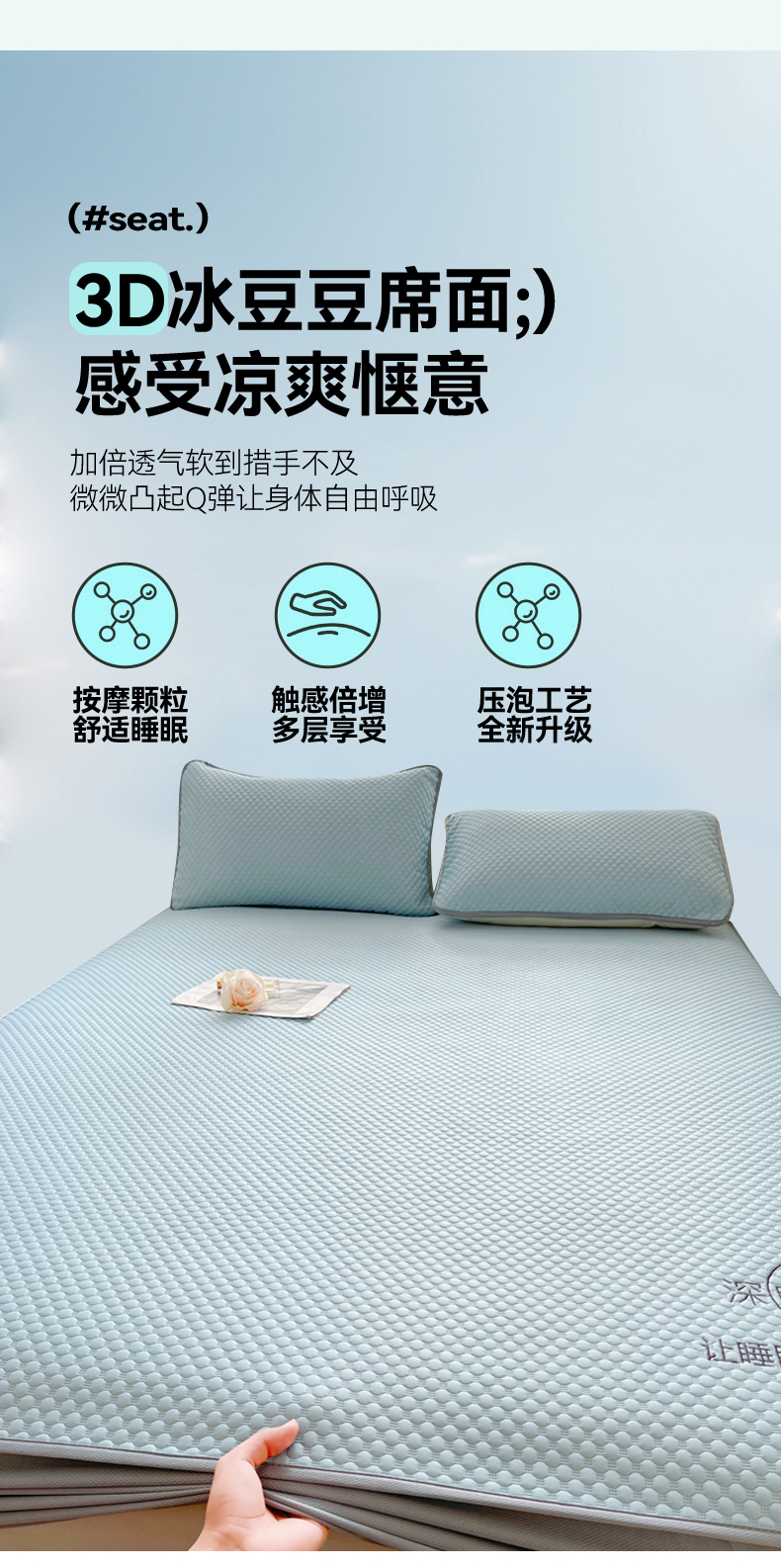 (总)邵依家纺 2026新款A类冰豆豆凉席床笠豆豆席子,床笠-冰川蓝,床笠-青提绿,床笠-清涧白,床笠-优雅粉,床笠-云汀灰