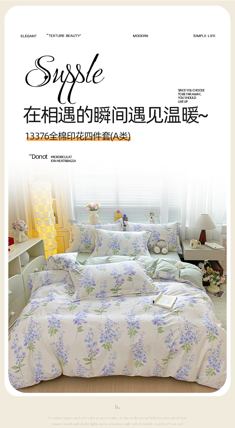 当前位置: 91家纺网 > 商品网购 > 床品套件 > 四件套 > 全棉普通四件套 > 大柏树 2026新款全棉纯棉13376印花四件套 花织梦紫