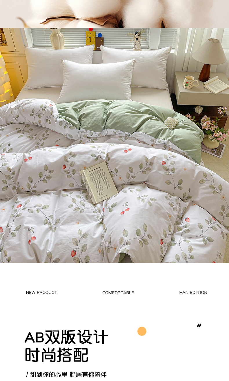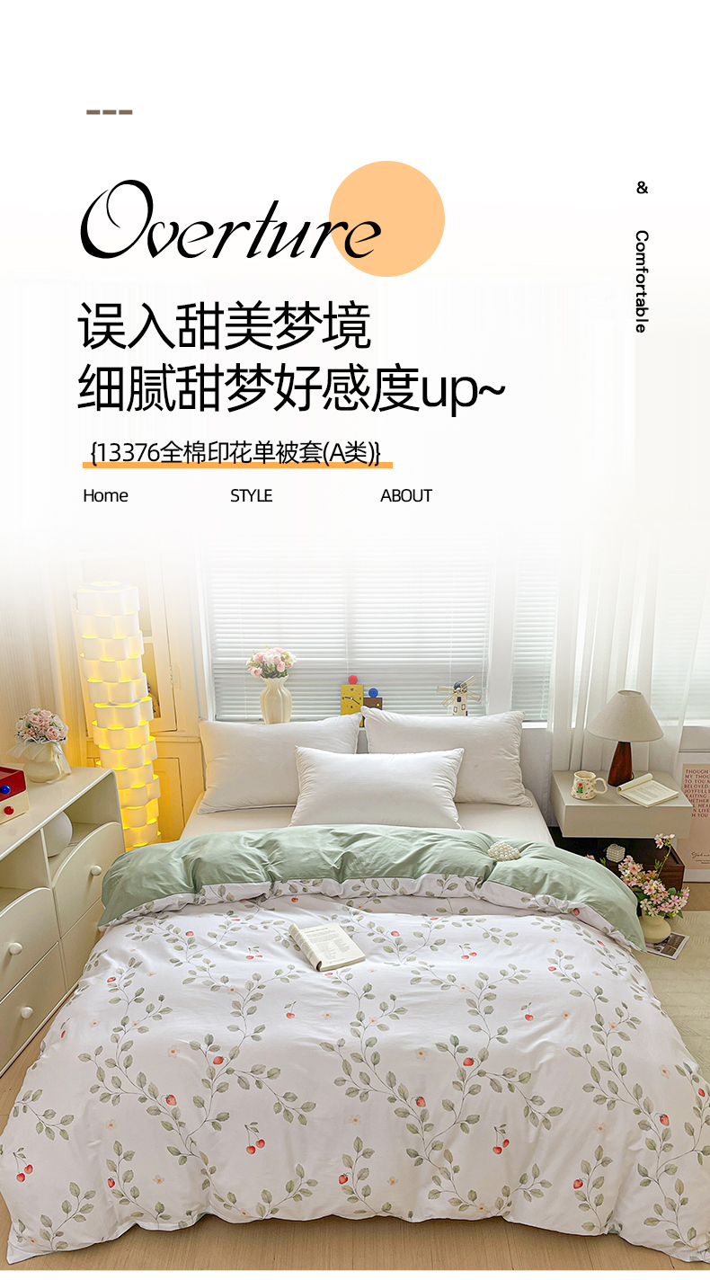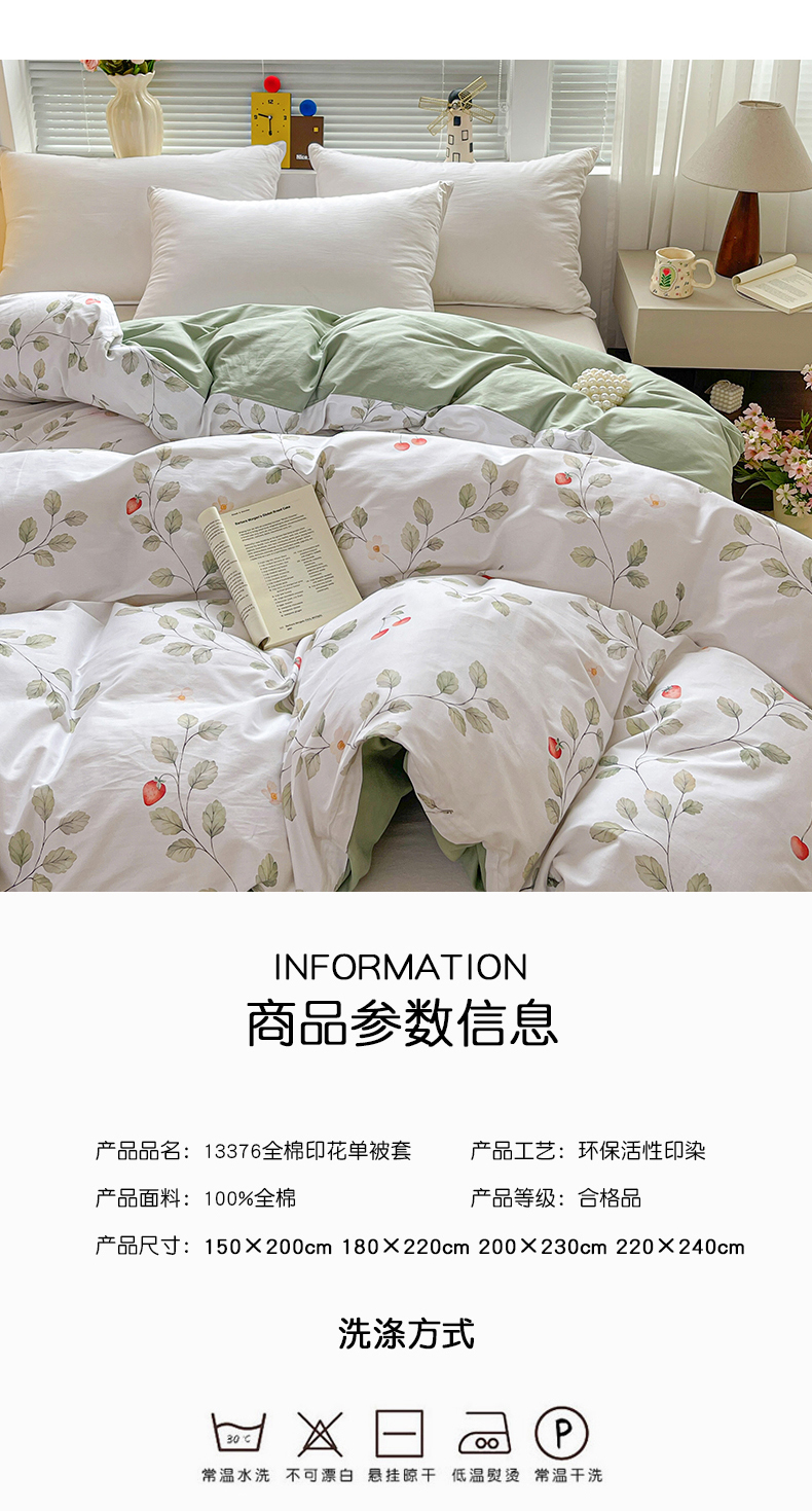 • 91家纺网 家纺一手货源 找家纺 大柏树 2026新款全棉纯棉13376印花单被套单品被套被套单件 花自红-绿