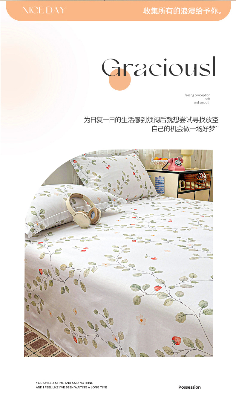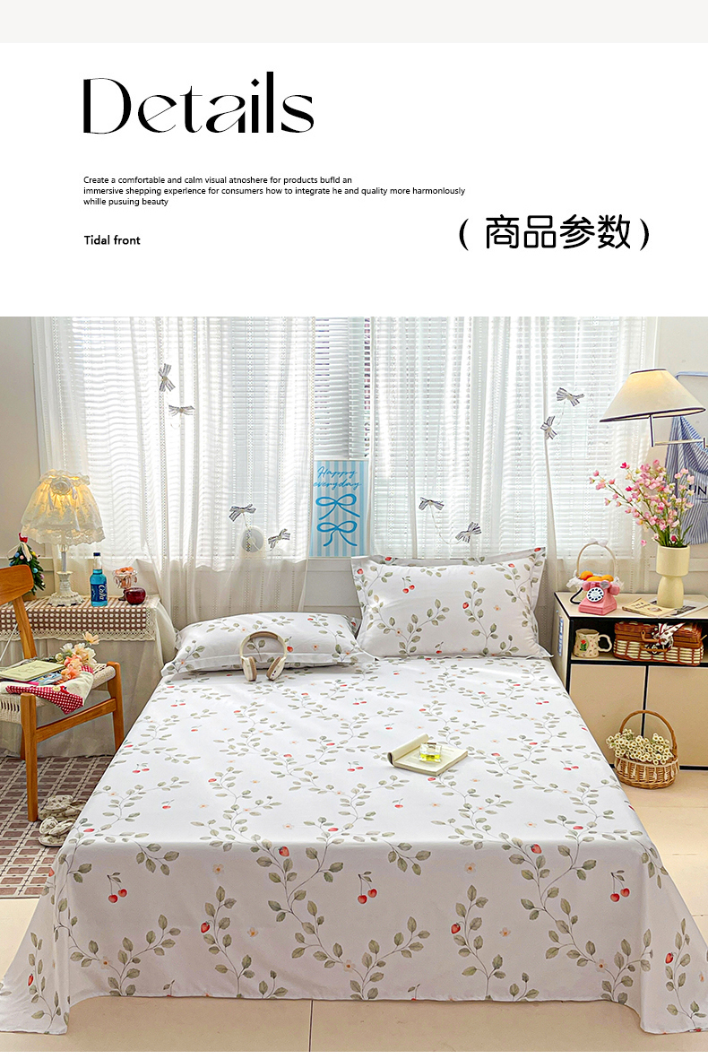 商品名称:大柏树 2026新款全棉纯棉13376印花单床单单品床单床单单件 花自红-绿