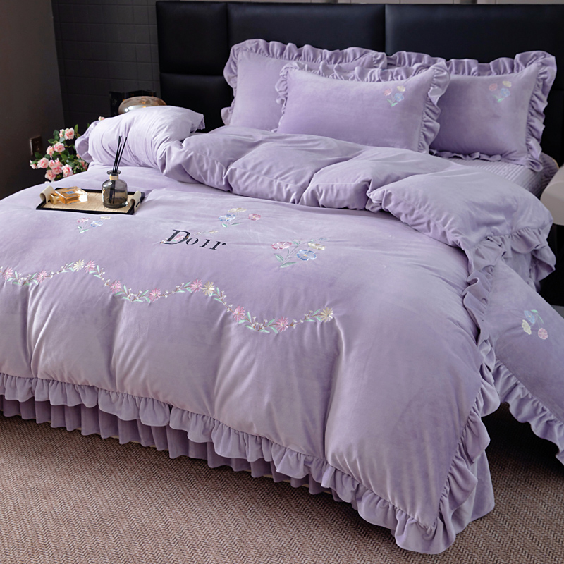 莉迪娅 2026新款宝宝绒绣花床盖四件套婴儿绒纯色牛奶绒-Do系列 Do-香槟