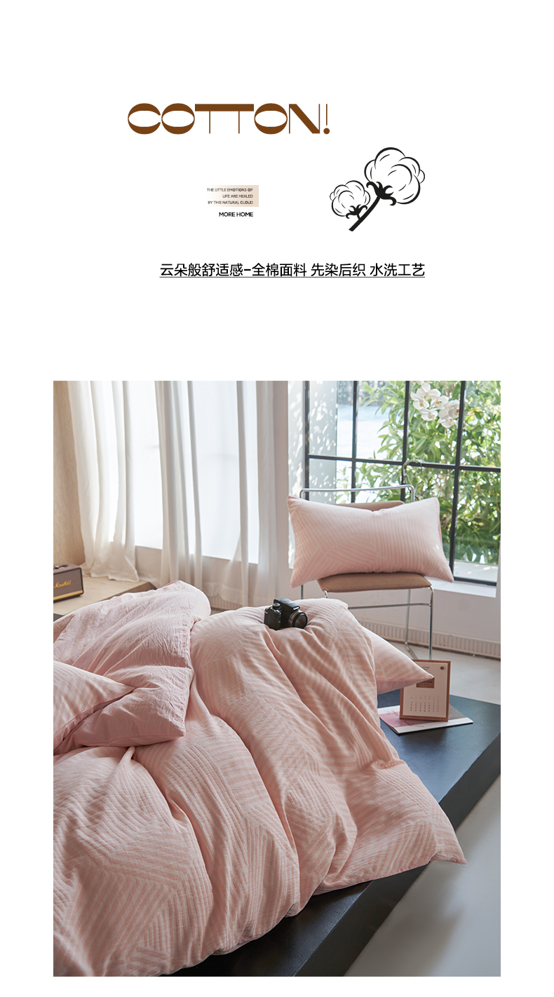当前位置: 91家纺网 > 商品网购 > 床品套件 > 四件套 > 全棉普通四件套 > 如一 2026春夏新款色织提花全棉纯棉水洗棉四件套 序章-粉