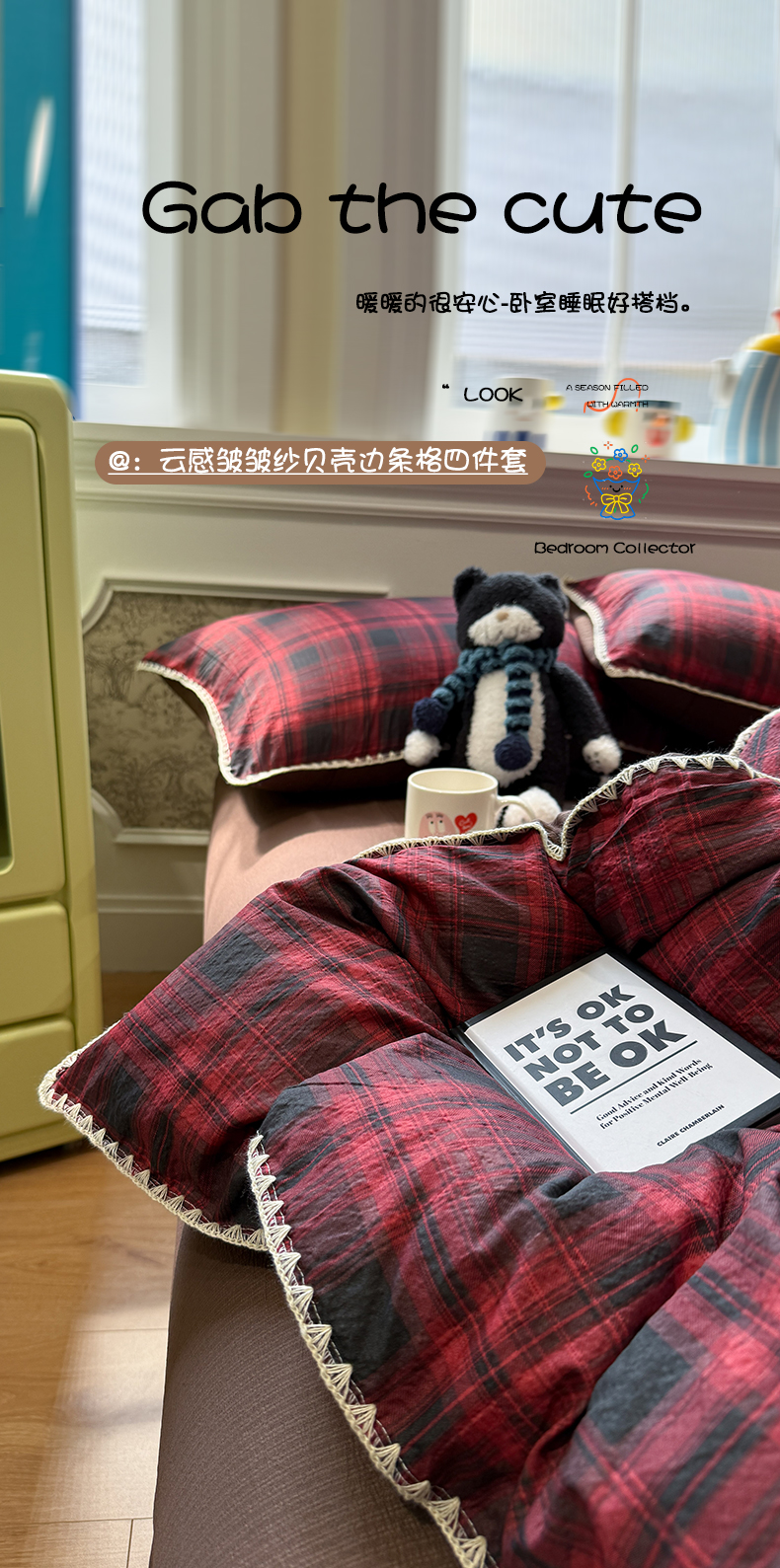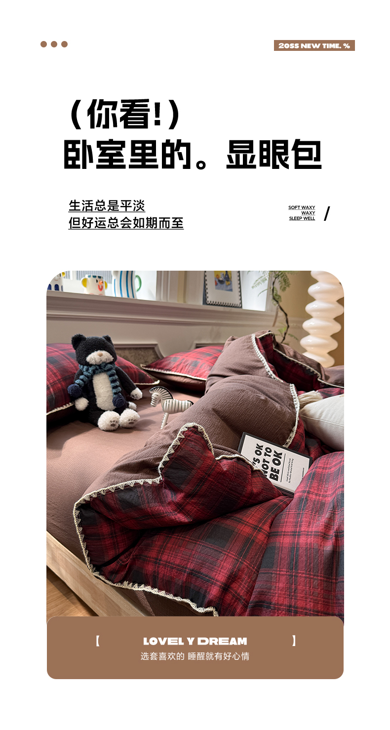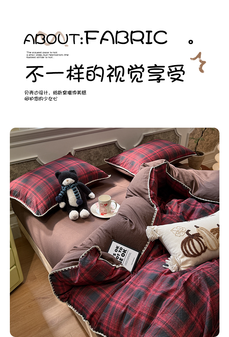 (总)水墨江南 2025新款小清新水洗棉印花四件套,豆蔻,格调,格子小狗,格子樱桃,海盐波点,花季,花田-粉,花田-蓝,假日小熊,山茶花,芋泥波点,紫色蝴蝶结