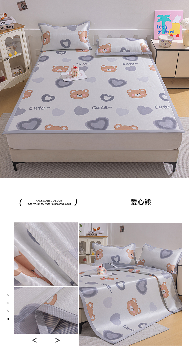 商品名称:小萌虎 2026新款碳光冰丝席平铺款床席款 爱心熊