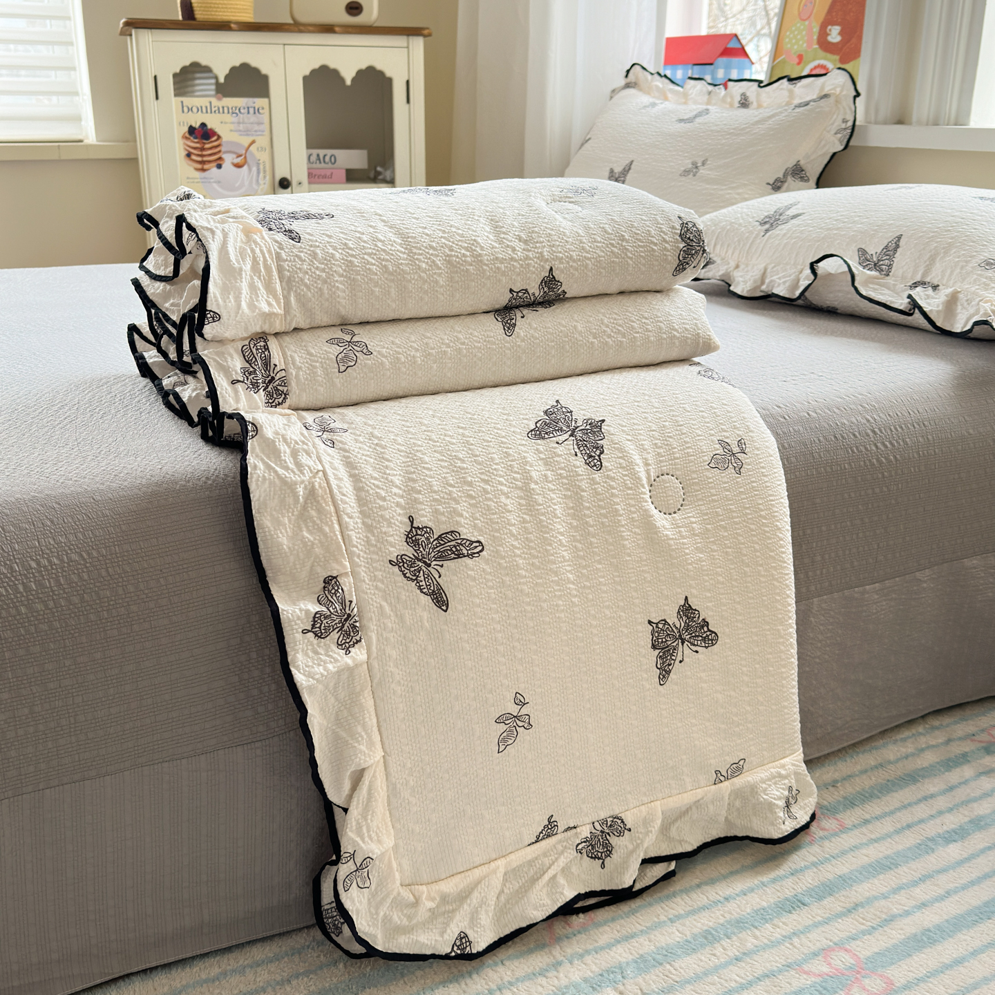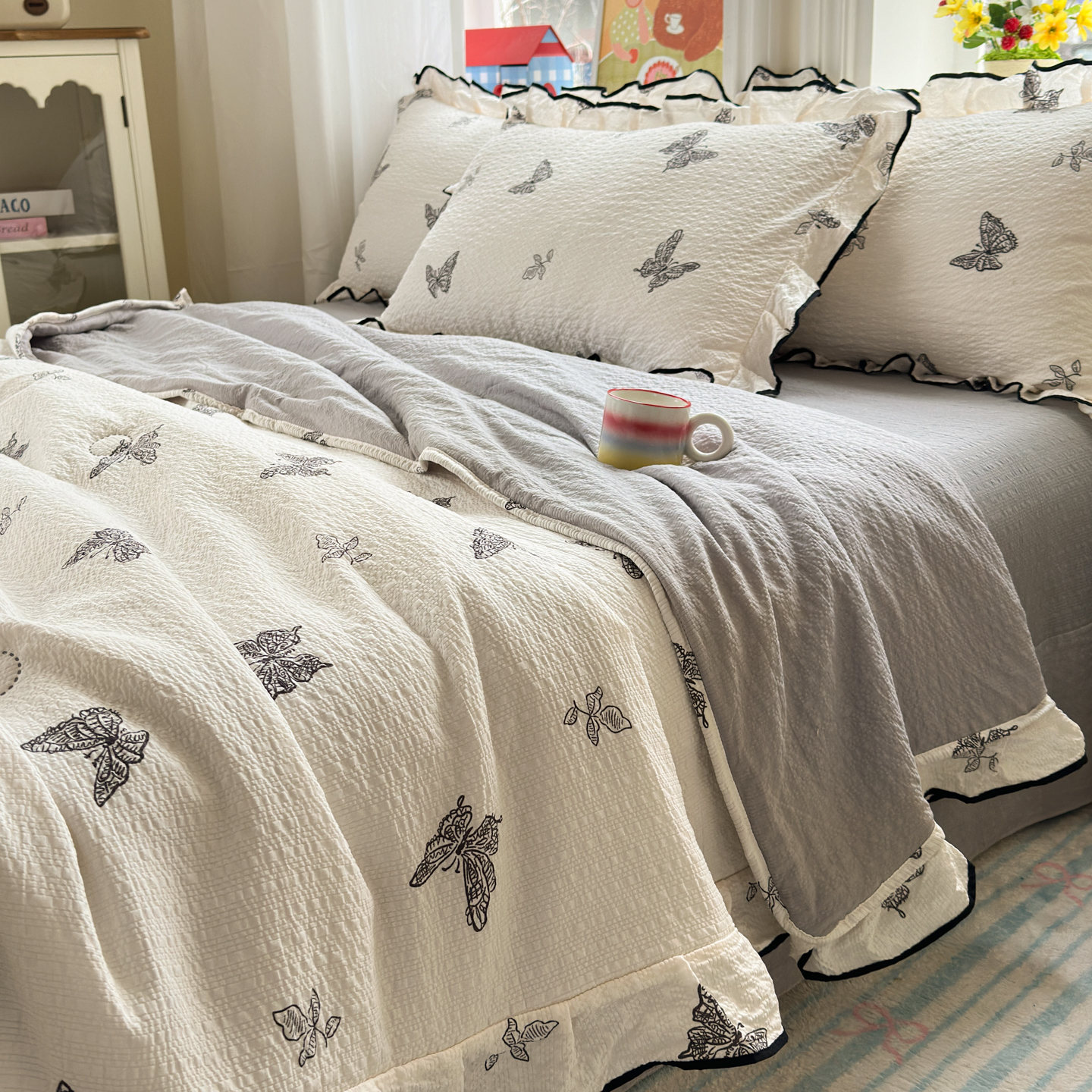 德比尔斯 2026新款泡芙棉夏被四件套花边款 蝴蝶