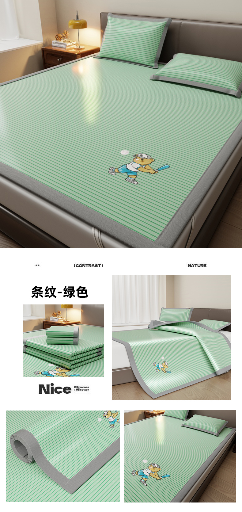 (总)人人爱家纺 2026新款提花冰丝凉席-棒球熊,棒球熊千鸟格蓝色,棒球熊粉色条纹,棒球熊灰色条纹,棒球熊蓝色条纹,棒球熊立体格灰色,棒球熊立体格蓝色,棒球熊抹茶绿条纹,棒球熊千鸟格灰色