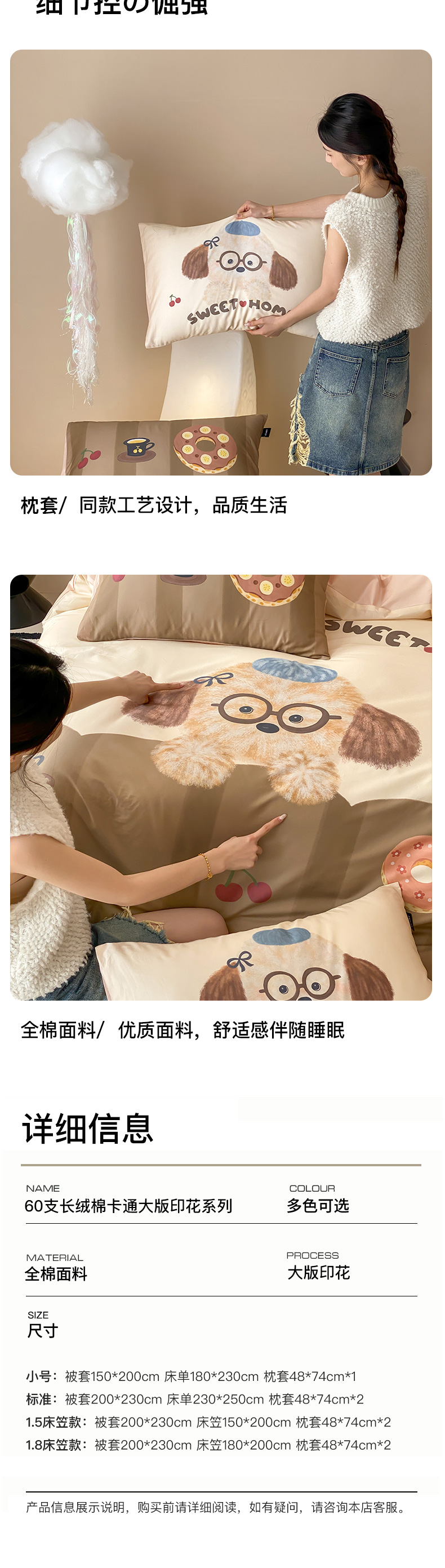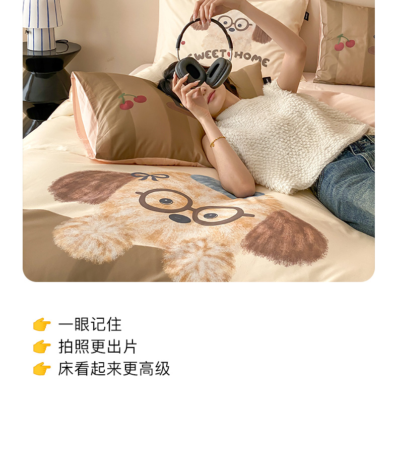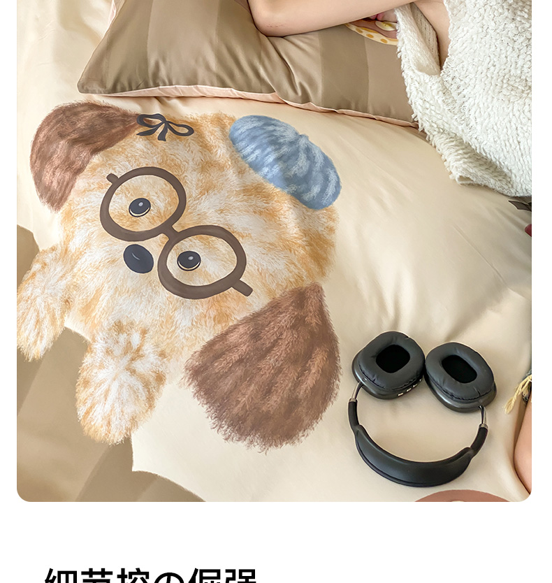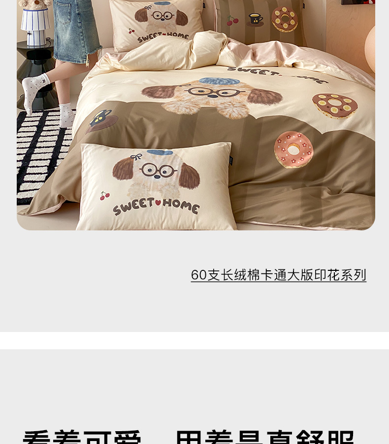 商品名称:卡姿家纺 2026春夏全棉60支长绒棉卡通大版印花四件套 小狗甜甜圈