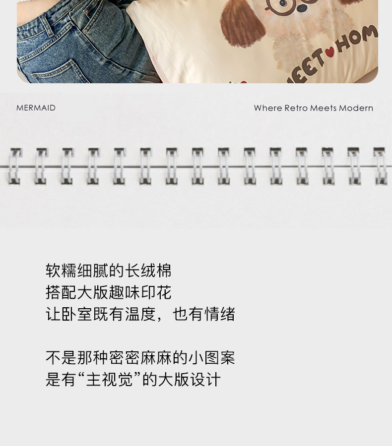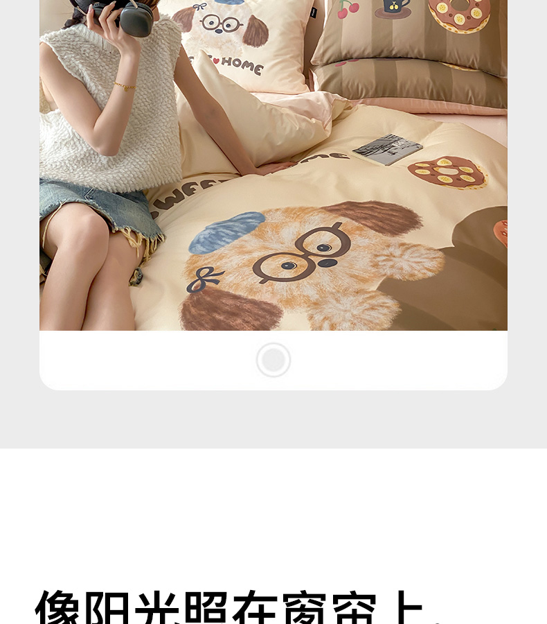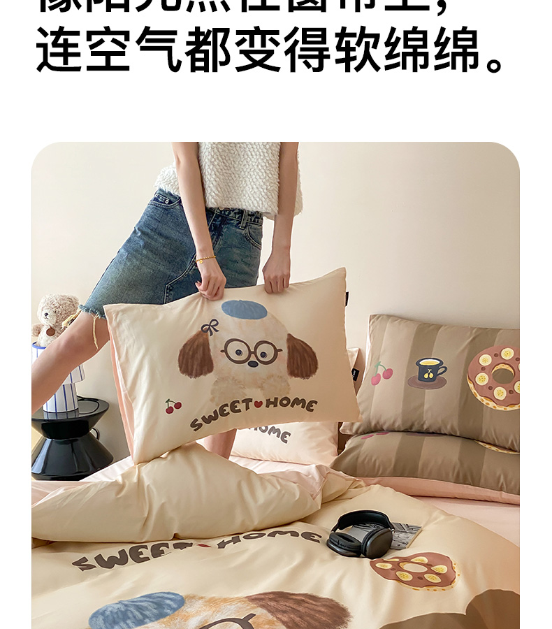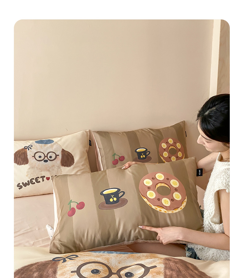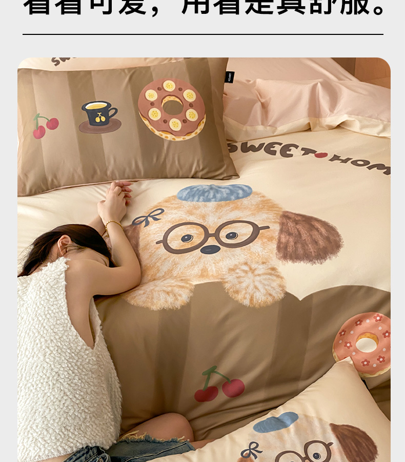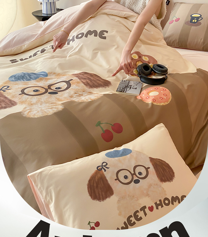 卡姿家纺 2026春夏全棉60支长绒棉卡通大版印花四件套 小狗甜甜圈