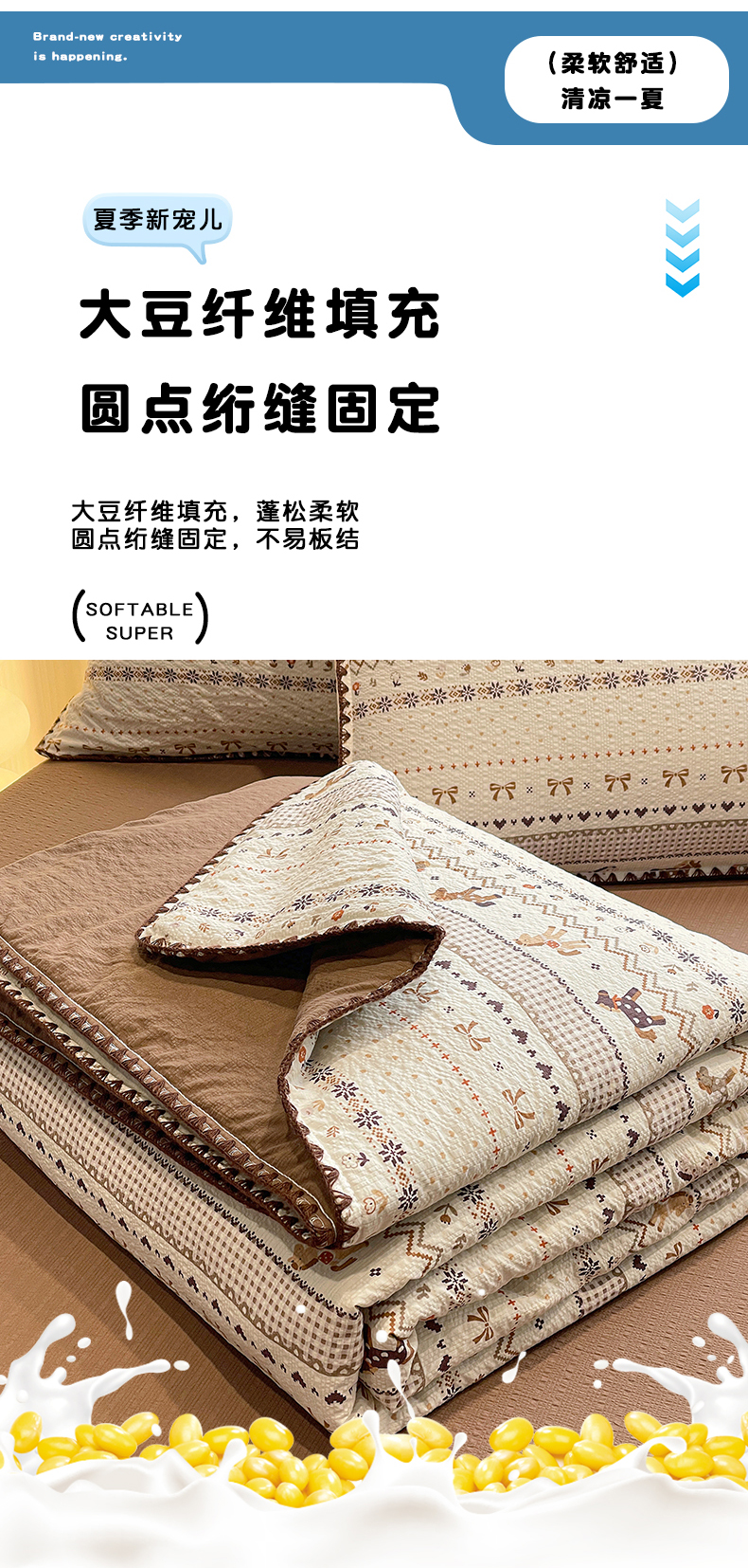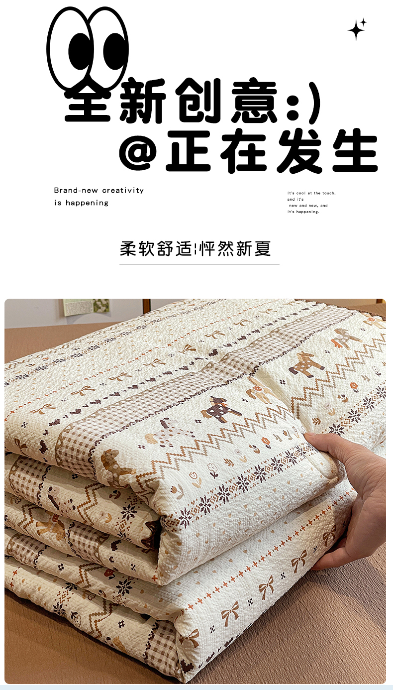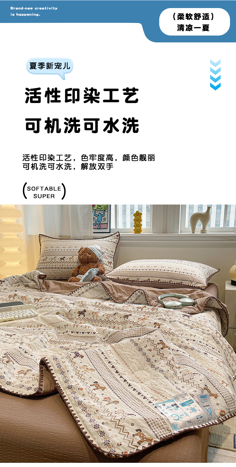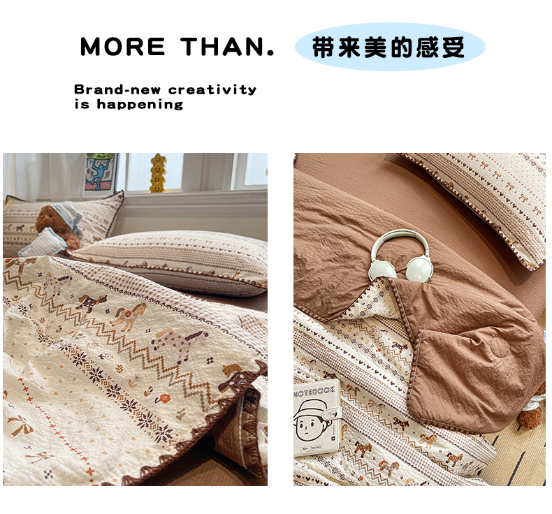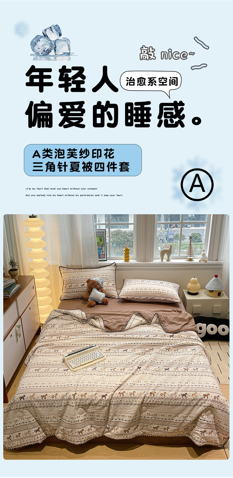 当前位置: 91家纺网 > 商品网购 > 床品套件 > 四件套 > 夏被四件套 > 奈颜 2026新款费尔岛云柔泡芙纱A类贝壳边夏被四件套-提供买家秀 栗色小马