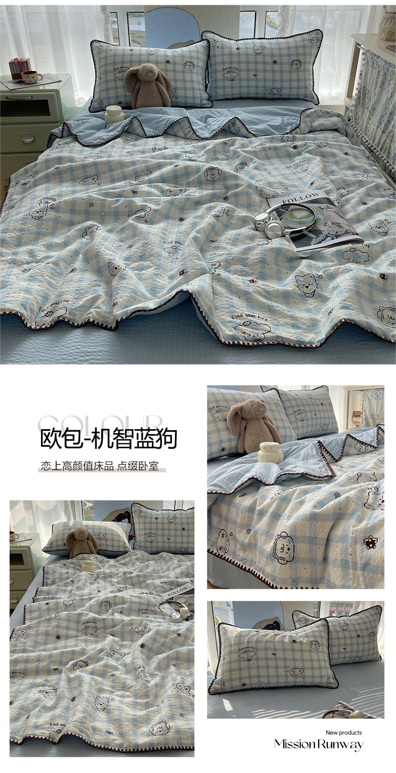 几禾 2026春夏新款泡芙纱贝壳边夏被夏凉被空调被四件套 欧包-木马小花团