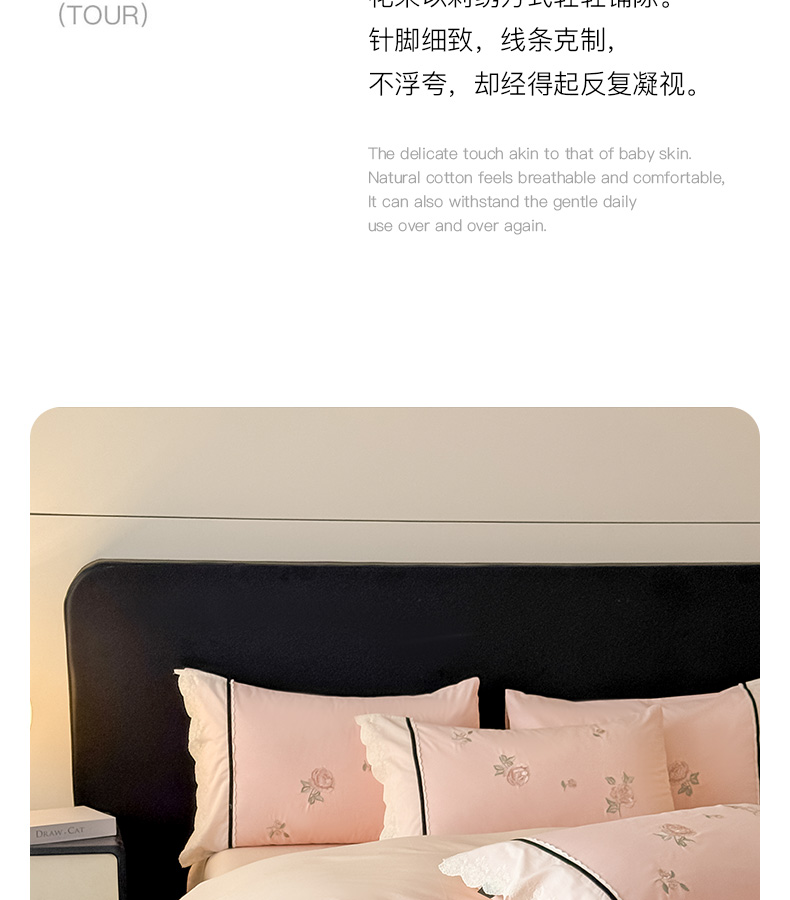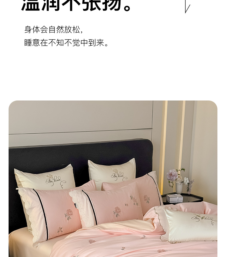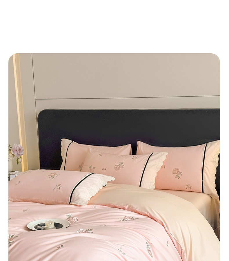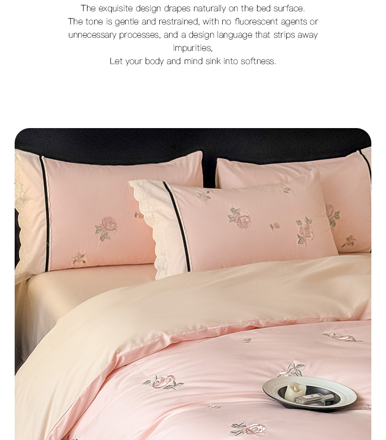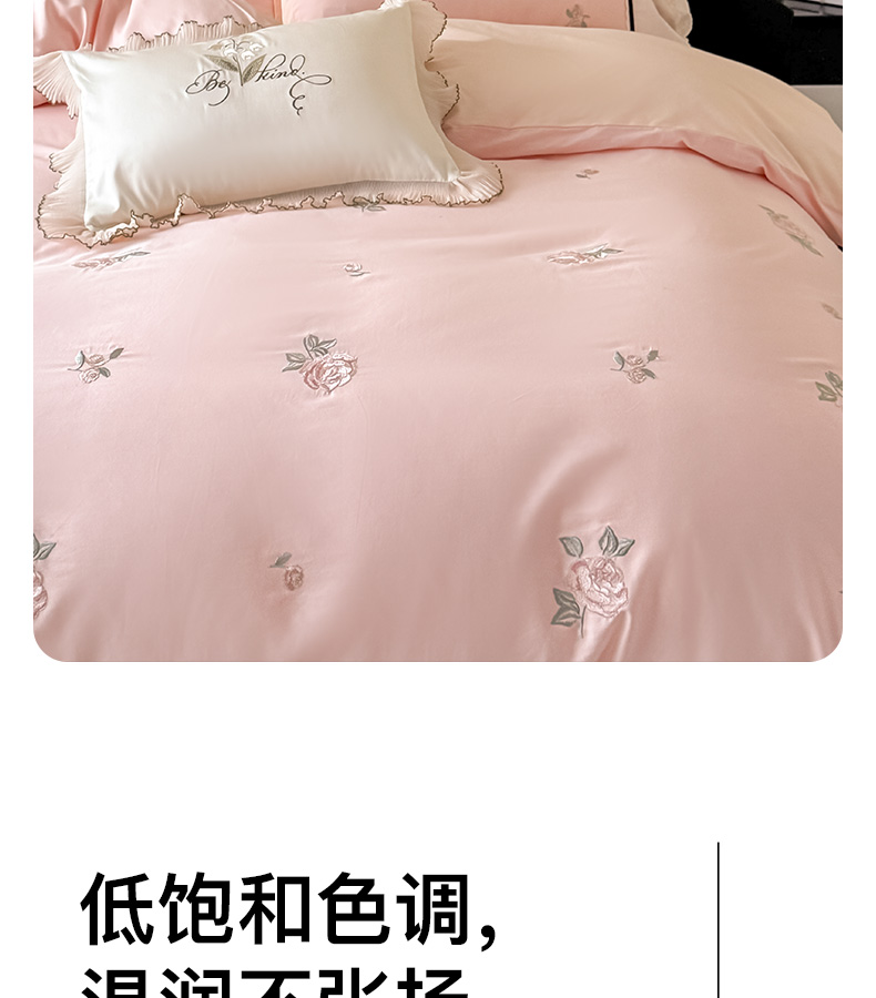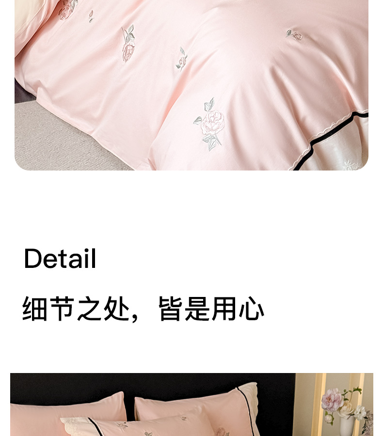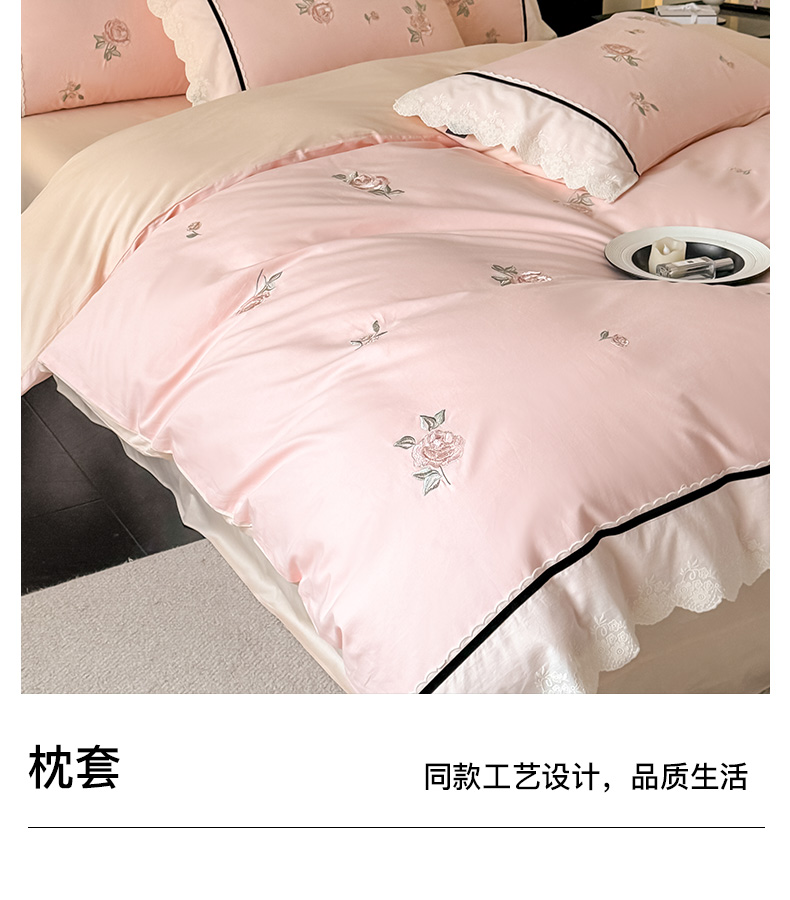 商品名称:卡姿家纺 2026春夏全棉小法式气质款刺绣四件套—菲琳 菲琳粉