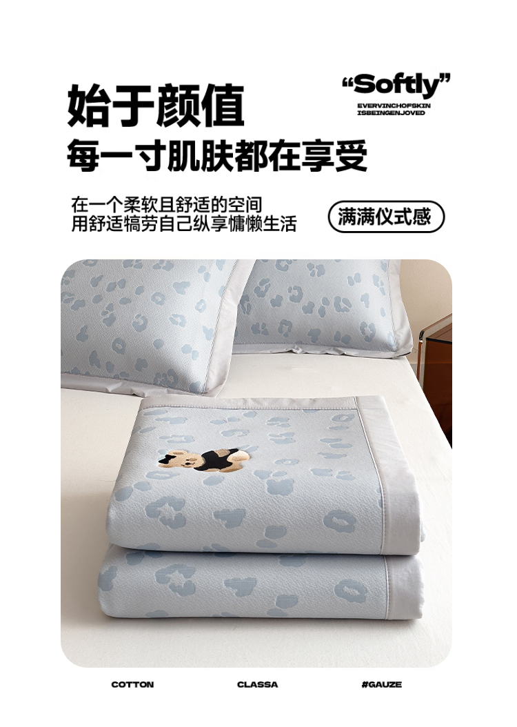 当前位置: 91家纺网 > 商品网购 > 床上用品 > 凉席 > 其他凉席 > 几禾 2026春夏新款豹纹刺绣凉席空调软席凉席席子 小熊豹豹-浅蓝 床席款