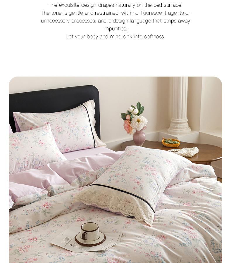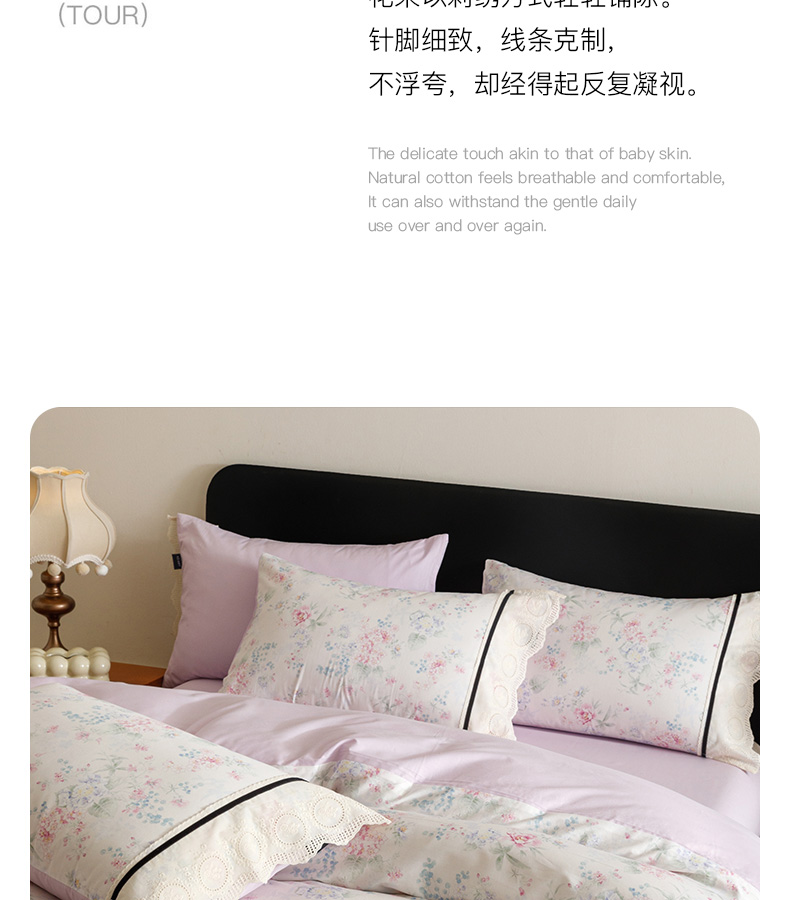 (总)卡姿家纺 全棉小法式镂空棉布花边款第一季四件套