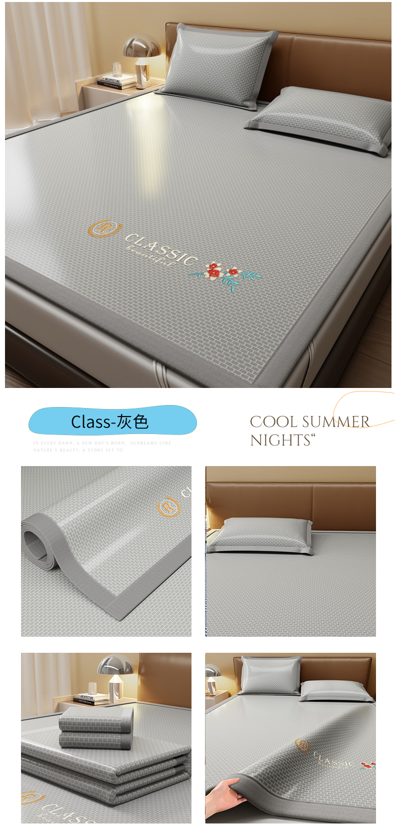 (总)人人爱家纺 2026新款夏季高端凉席竹席藤席,雅鹿棕色,良品灰色,良品棕色,雅鹿灰色