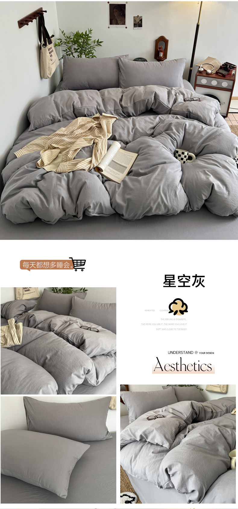 当前位置: 91家纺网 > 商品网购 > 床品套件 > 四件套 > 化纤普通四件套 > 梦嘉居 2026新款亲肤纯色AB版水洗皱皱棉四件套学生宿舍床单床笠三件套 星空灰
