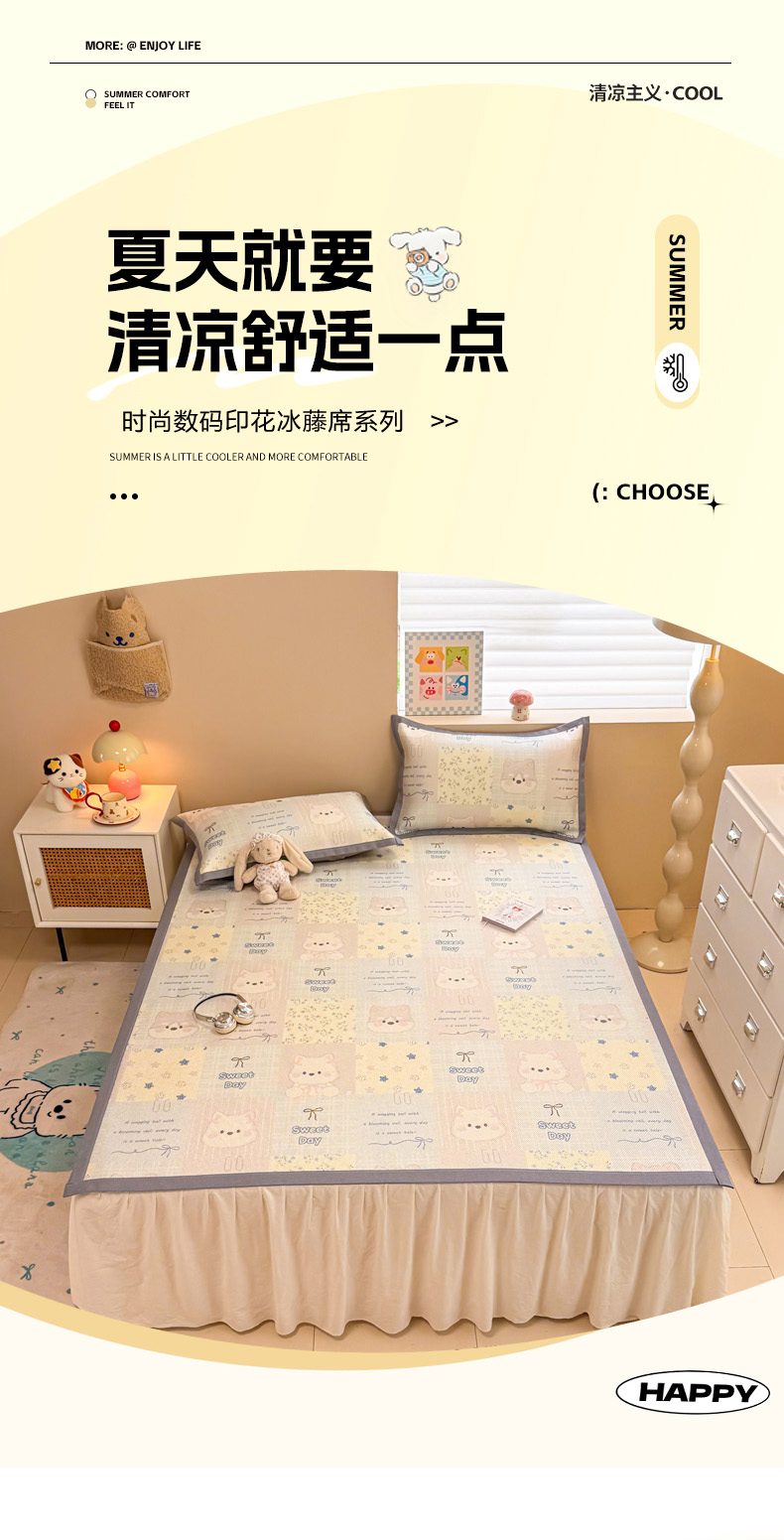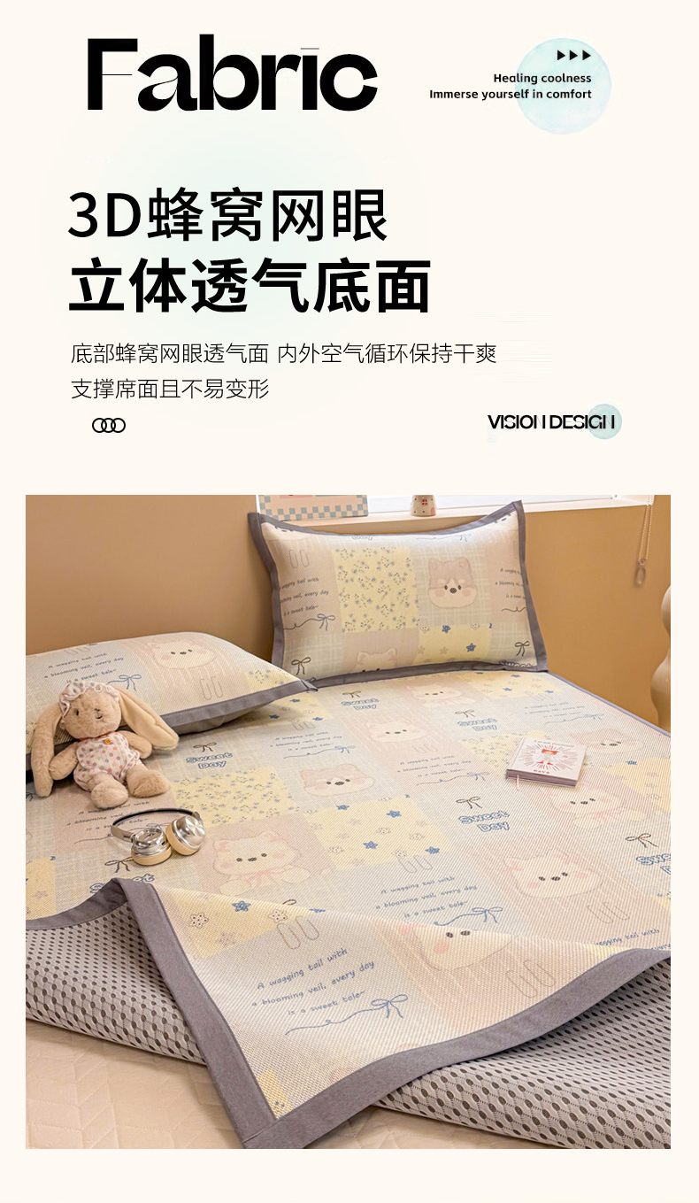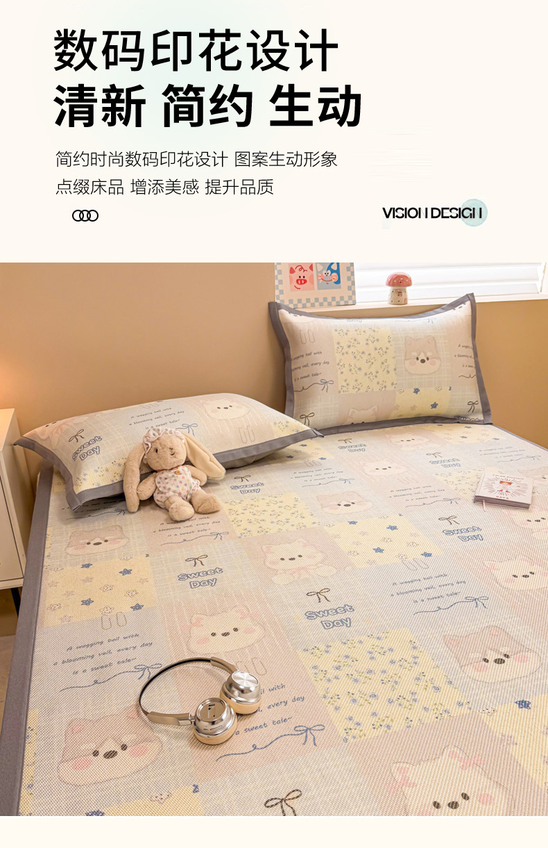 沐慕 2026新款高克重600D冰丝印花冰藤席 冰藤-甜狗日记