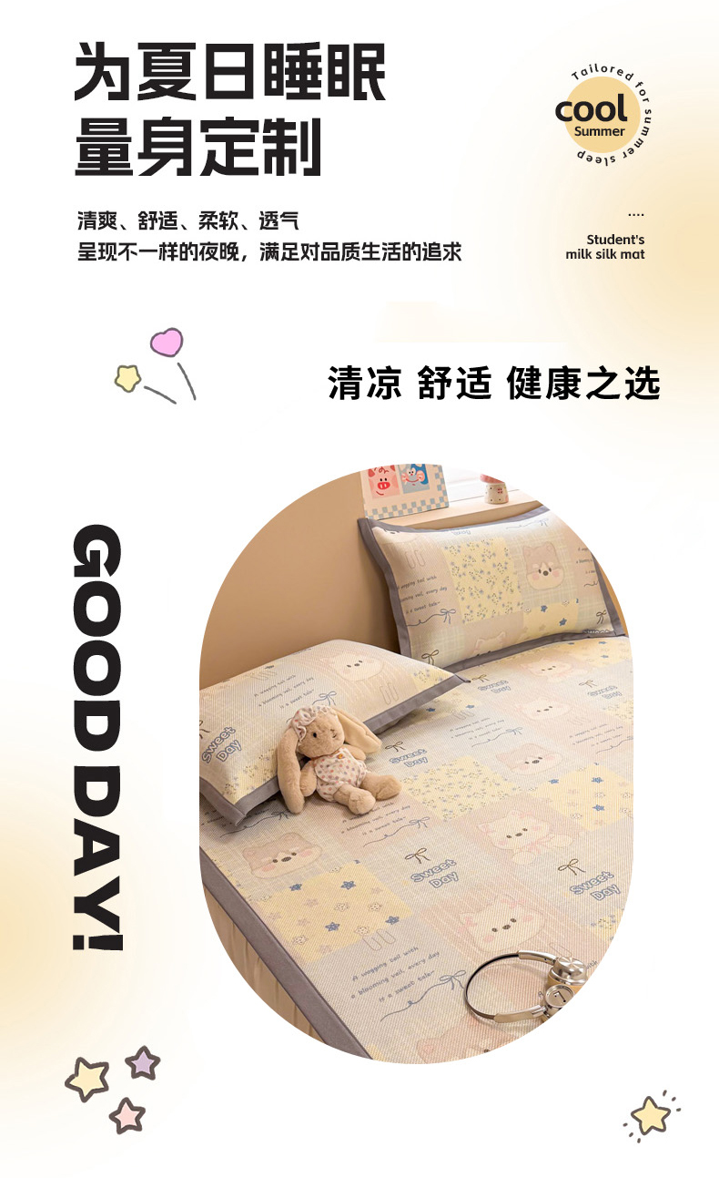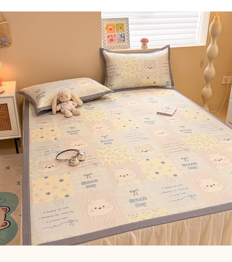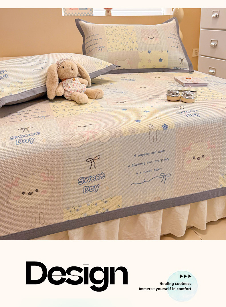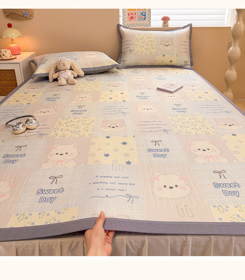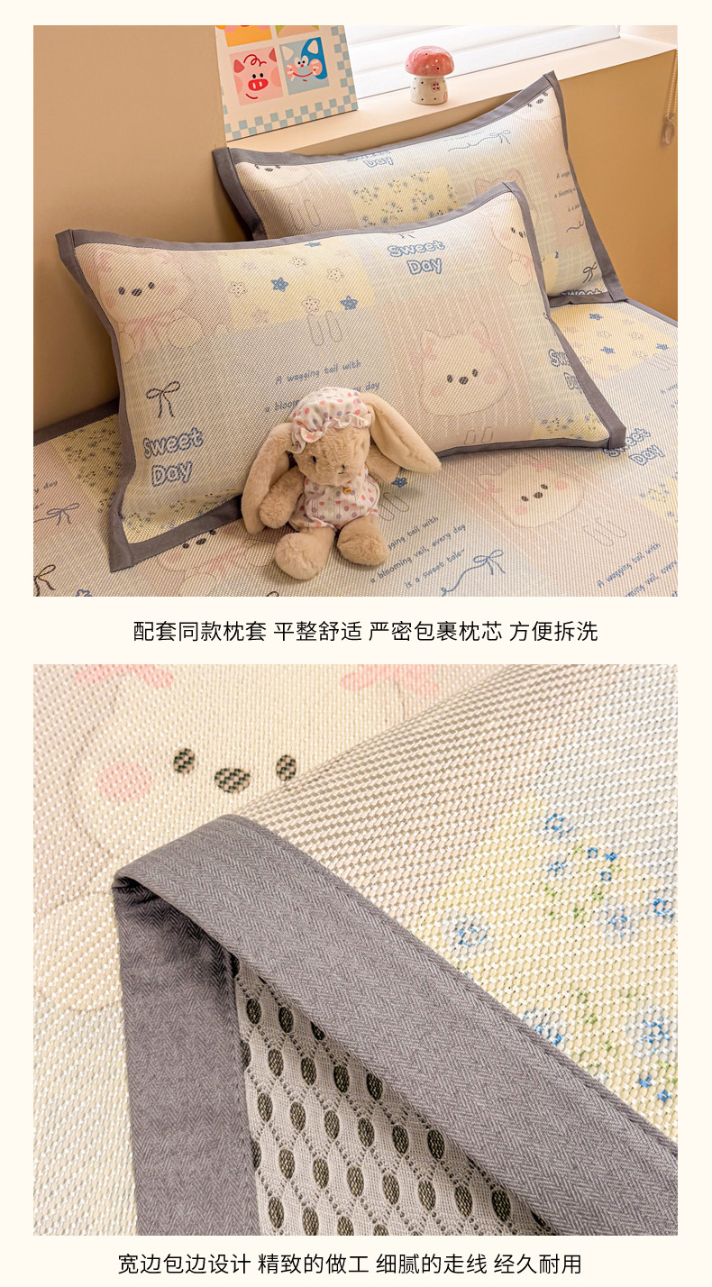 (总)沐慕 2026新款小清新凉感丝乳胶凉席三件套,爱心小兔,花花粉兔,萌萌鸭,萌宠礼物,豹纹小兔,萝莉猫,腊肠狗,粉格帽宠,三小只,森系兔,碎花小猫,糖果甜梦园,天使星星人,晚安拼格猫,樱桃萌猫,郁金香,云朵小熊