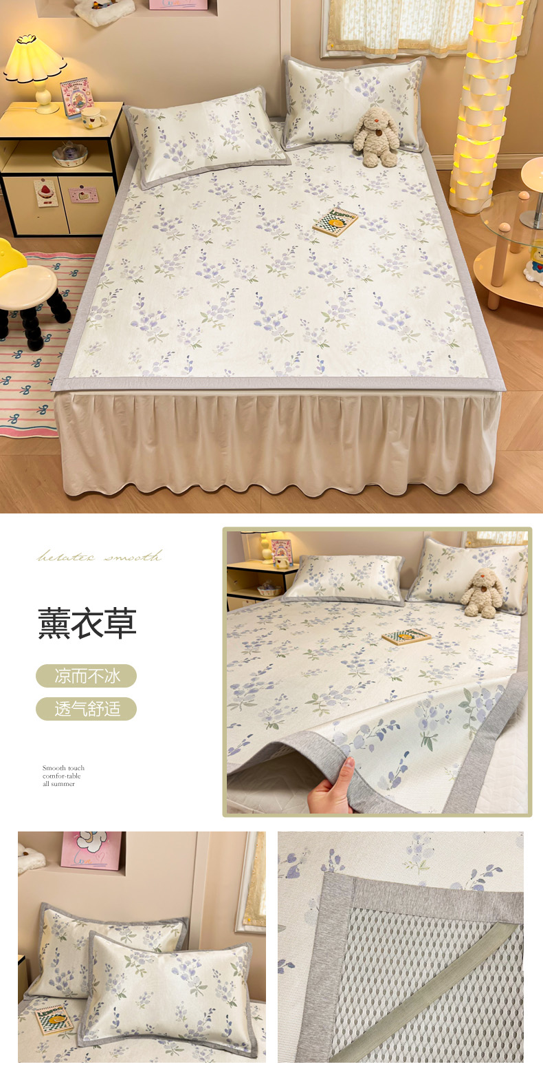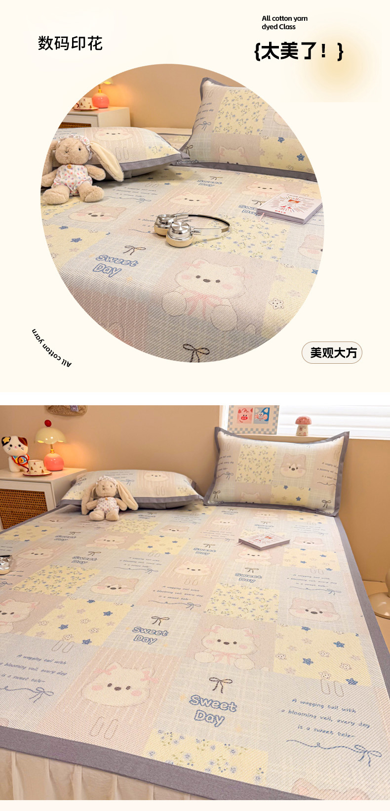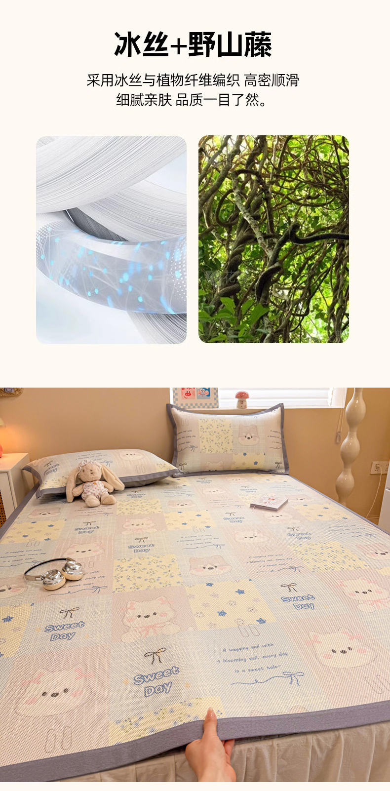 (总)沐慕 2026新款小清新凉感丝乳胶凉席三件套,爱心小兔,花花粉兔,萌萌鸭,萌宠礼物,豹纹小兔,萝莉猫,腊肠狗,粉格帽宠,三小只,森系兔,碎花小猫,糖果甜梦园,天使星星人,晚安拼格猫,樱桃萌猫,郁金香,云朵小熊