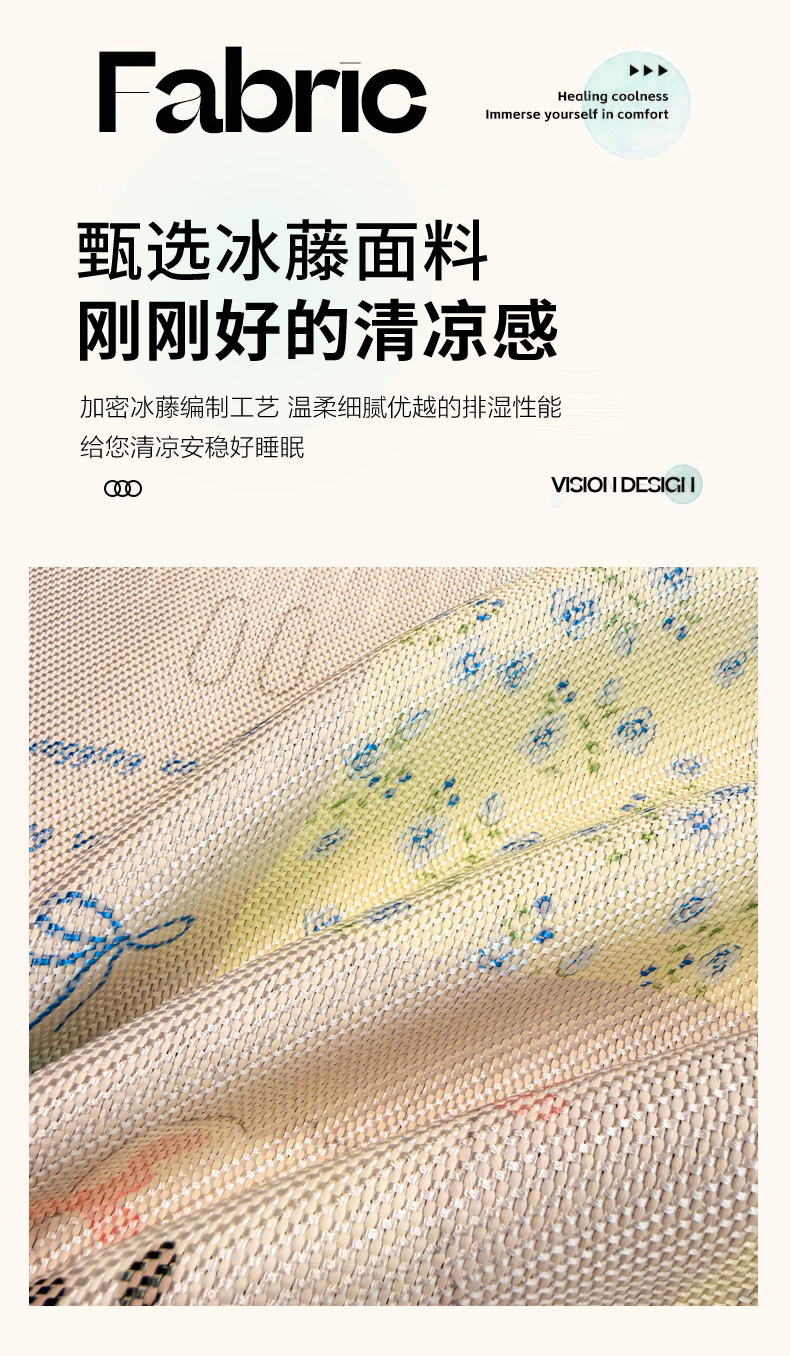 商品名称:沐慕 2026新款高克重600D冰丝印花冰藤席 冰藤-甜狗日记