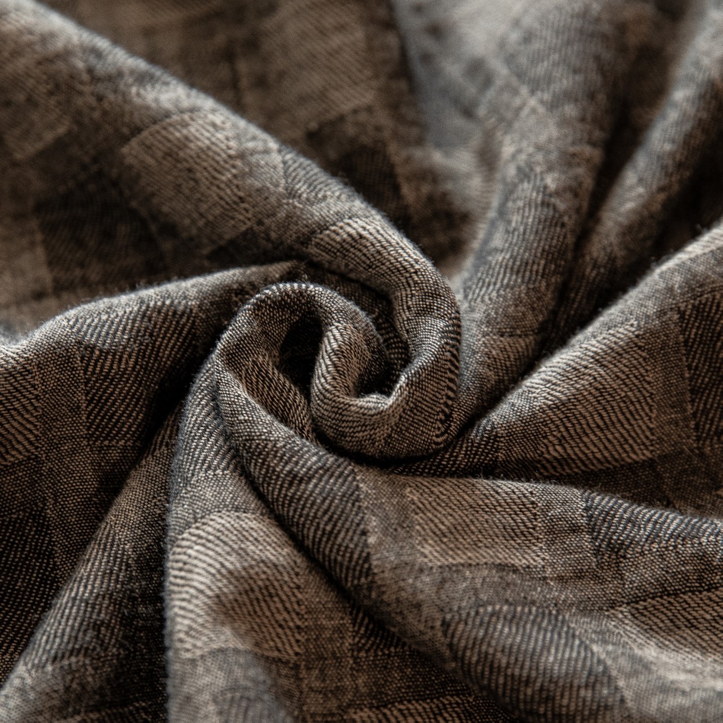商品名称:仰望棉麻双层纱供应链 2026新款朦胧格全棉色织提花双层纱纽扣款 朦胧格-深灰