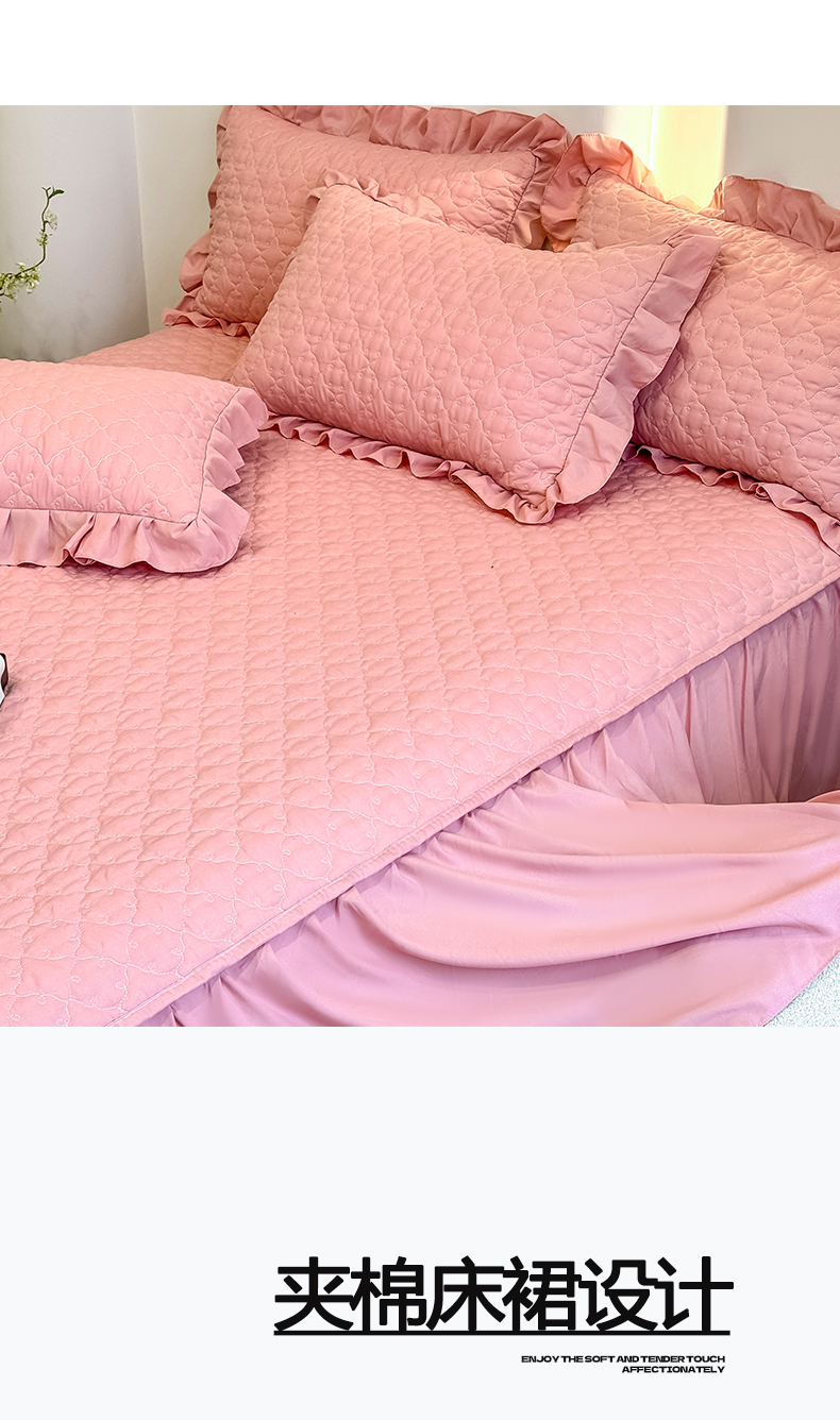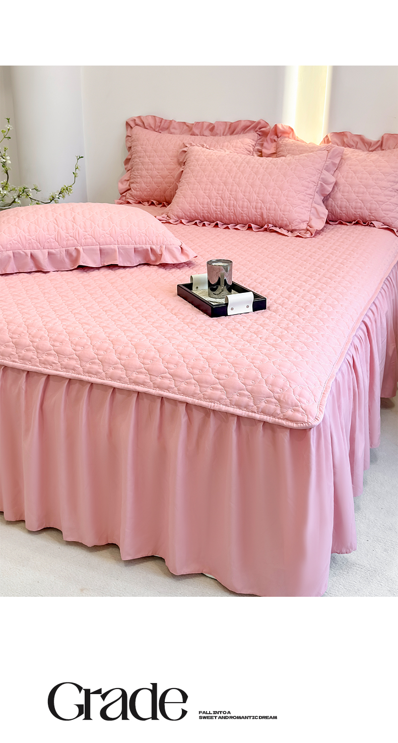 野合家纺 2026新款A类水洗棉纯色夹棉床裙单床裙床裙单件 豆沙