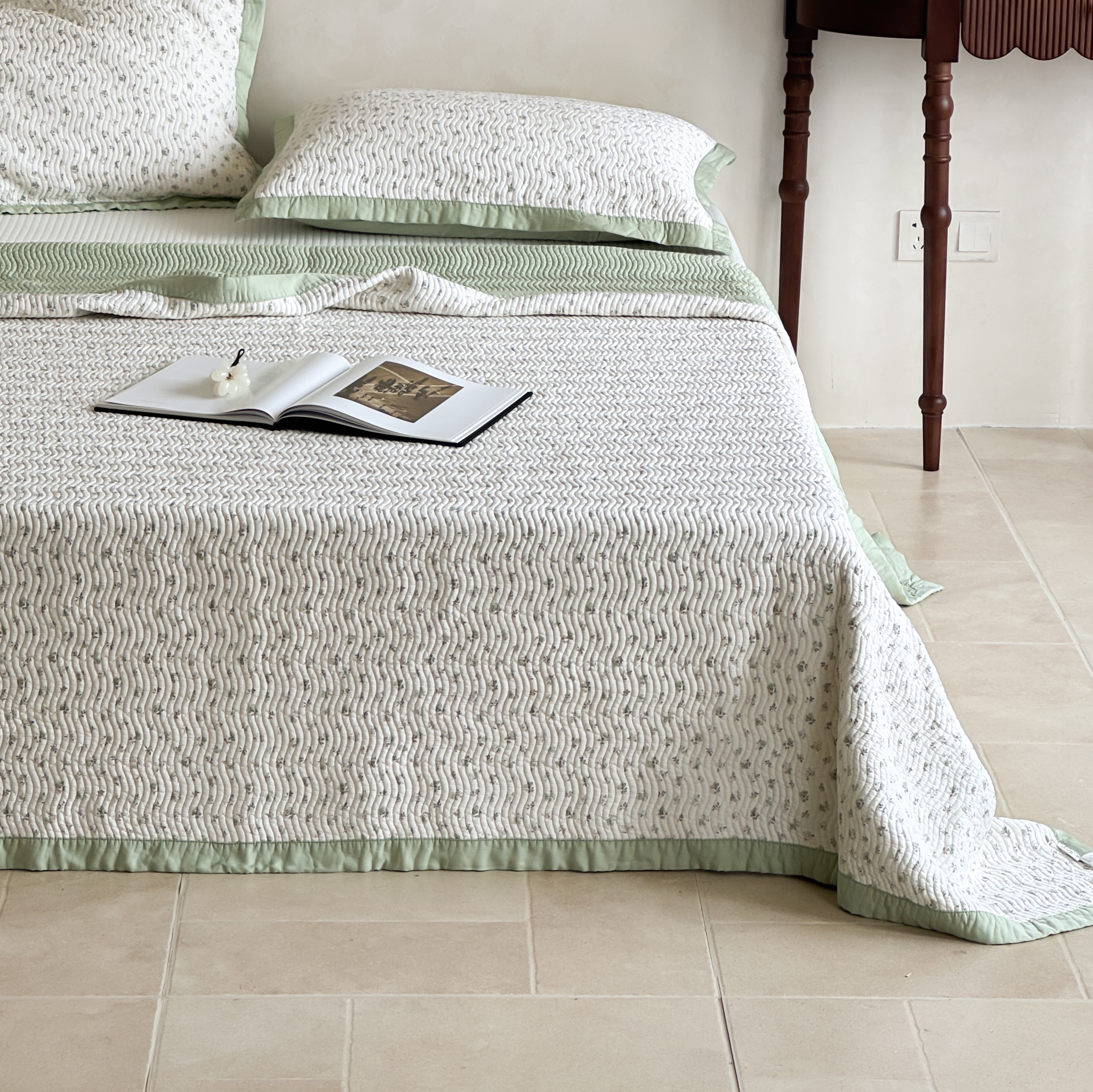 (总)床盖工厂店 2026新款莫代尔天丝床盖波浪纹绗缝床盖三件套,牧人-绿,山茶花波点-兰,香岛巴黎-咖,香岛巴黎-绿,与花期-咖,芝士樱桃-米