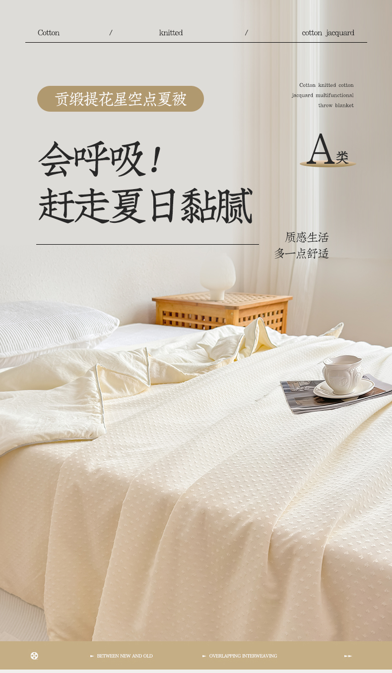 • 91家纺网 家纺一手货源 找家纺 (总)六合家纺 2026新款A类贡缎提花星空点夏被,星空点-米黄,星空点-白,星空点-香槟色,星空点-紫