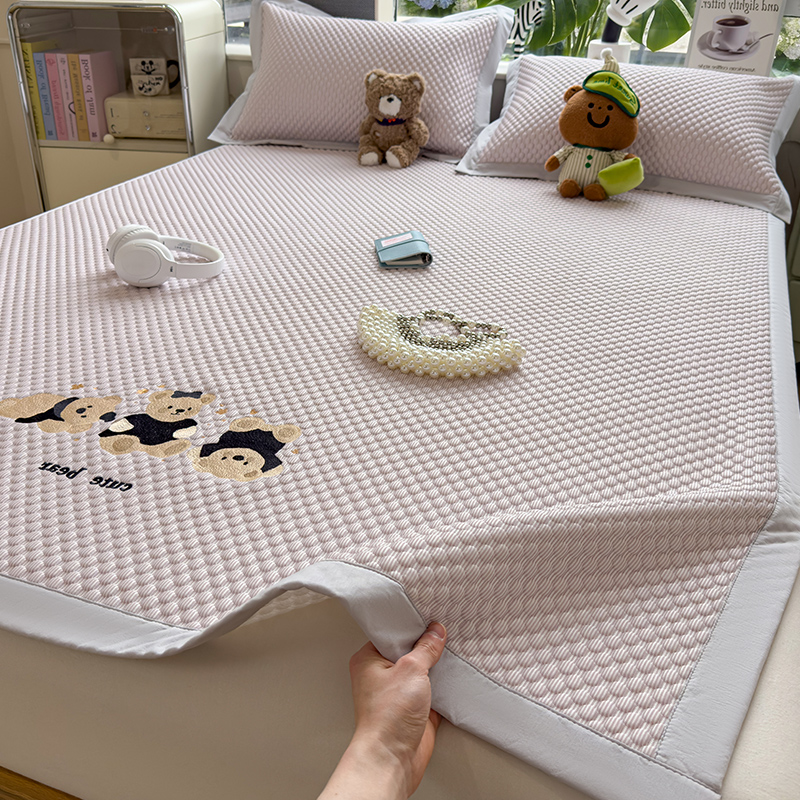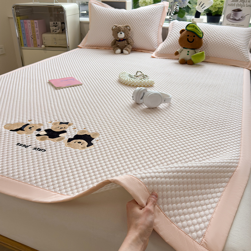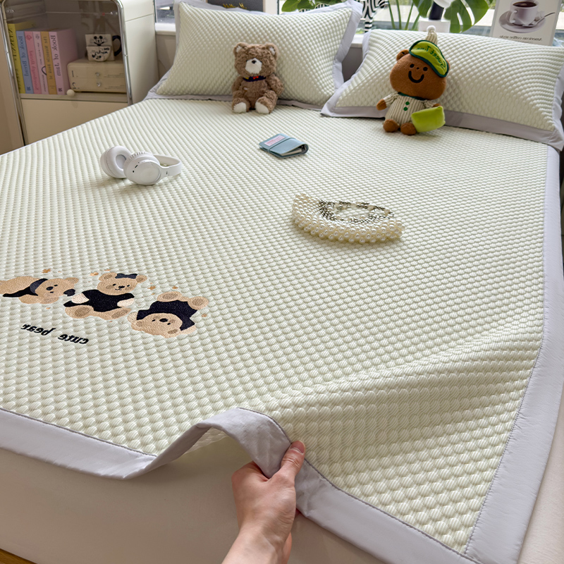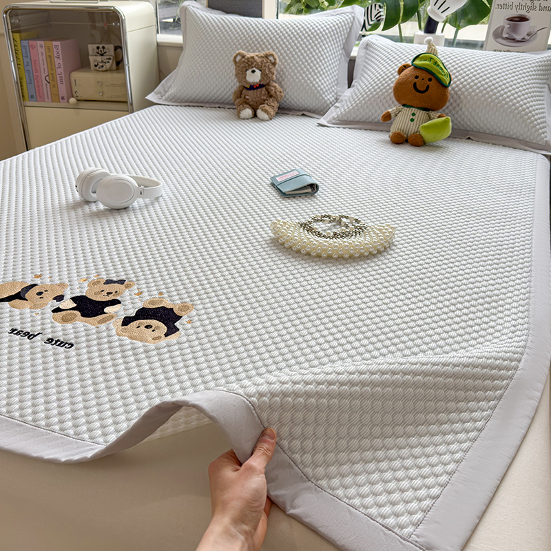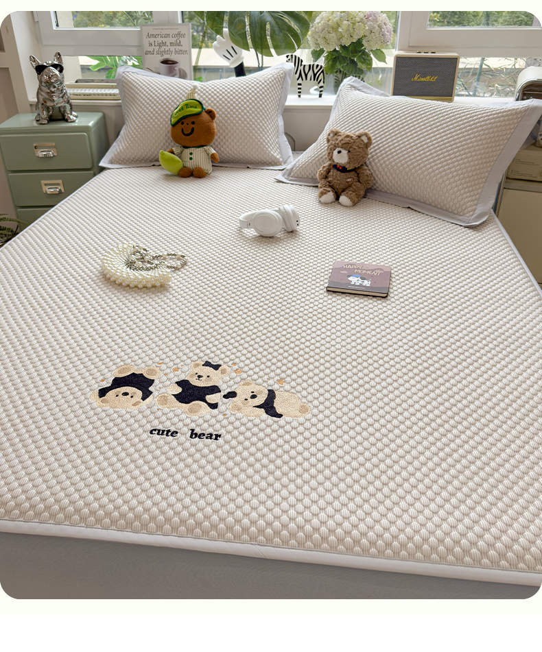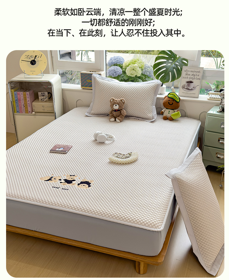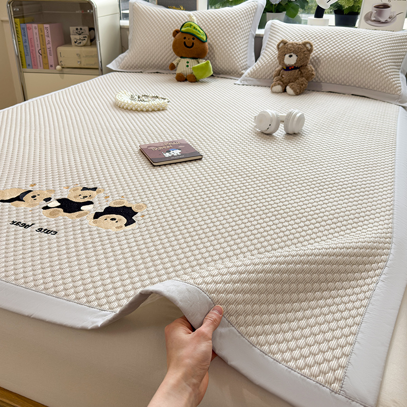 商品名称:(总)莱家富 2026新款A类卡通3D冰豆豆凉席三件套凉感值过0.21夏天刺绣冰丝席可机洗儿童空调软席子-豆豆小熊