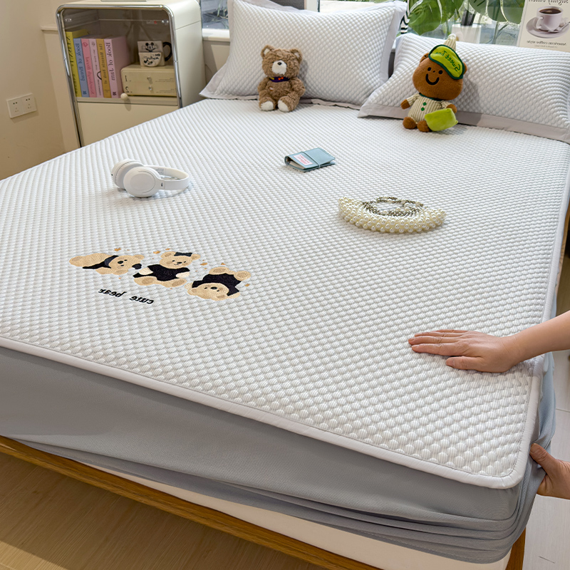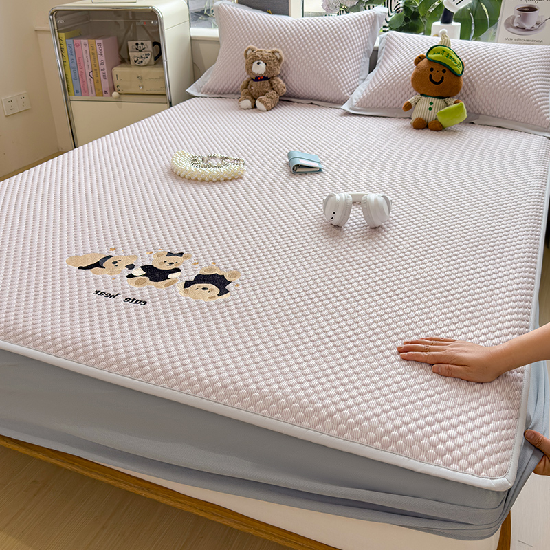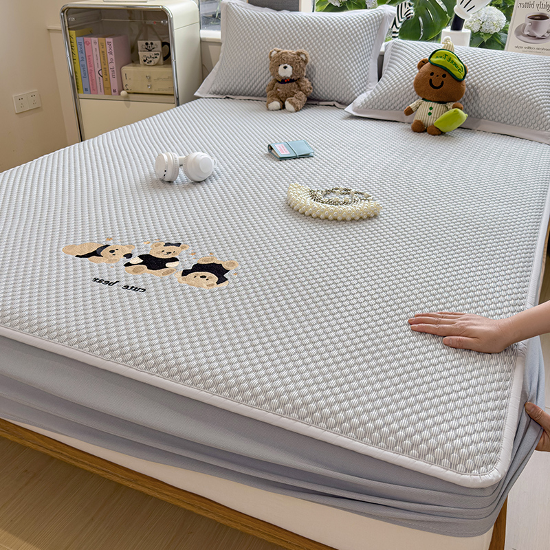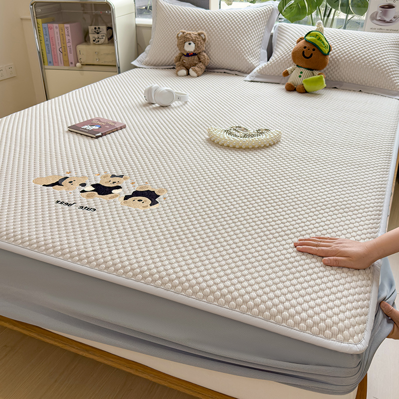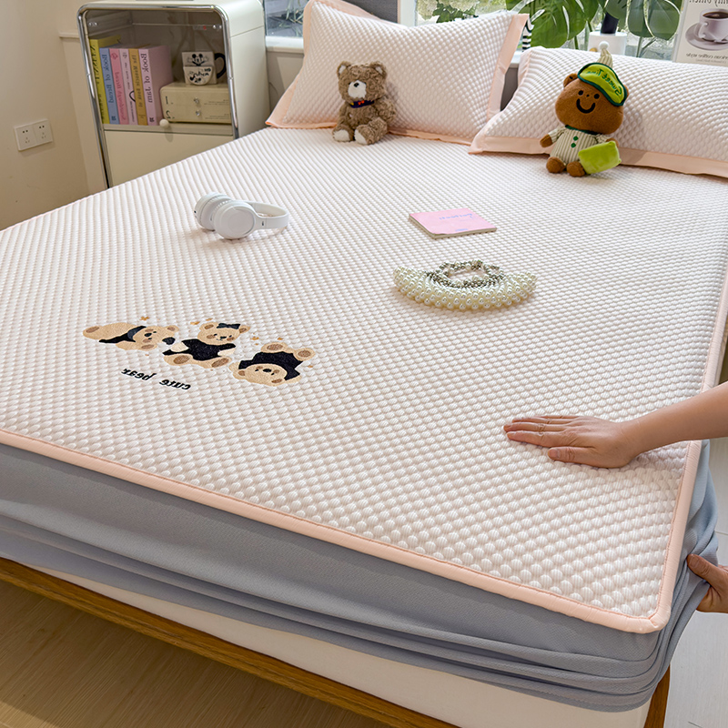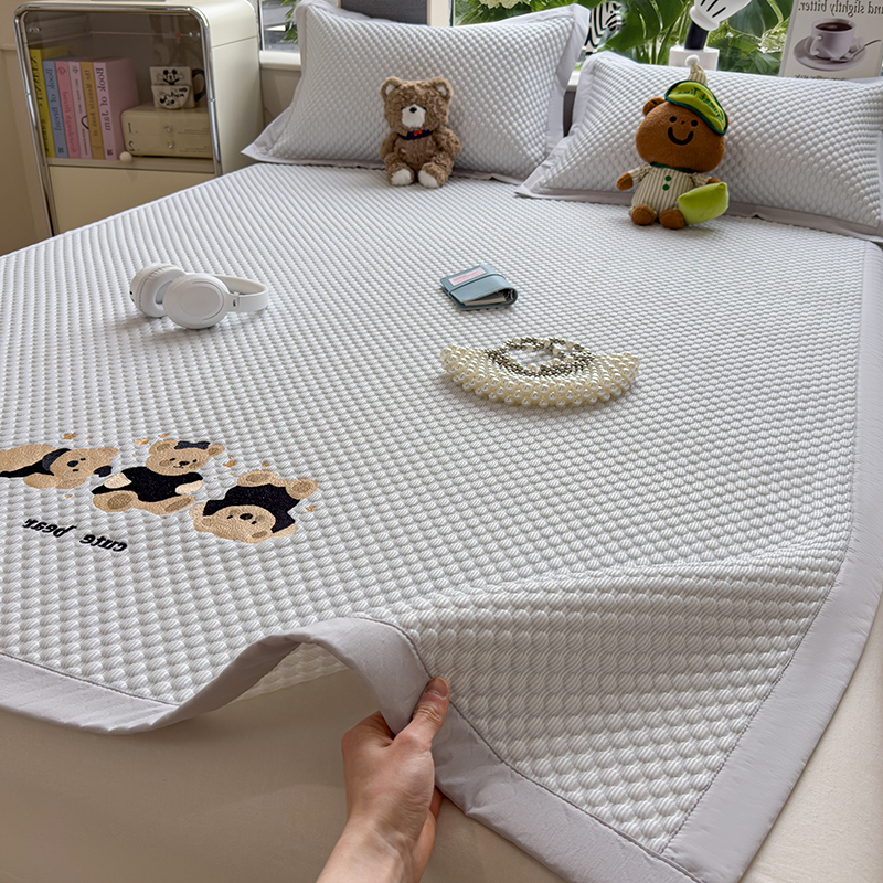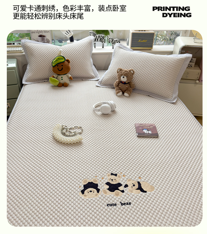 商品名称:(总)莱家富 2026新款A类卡通3D冰豆豆凉席三件套凉感值过0.21夏天刺绣冰丝席可机洗儿童空调软席子-豆豆小熊