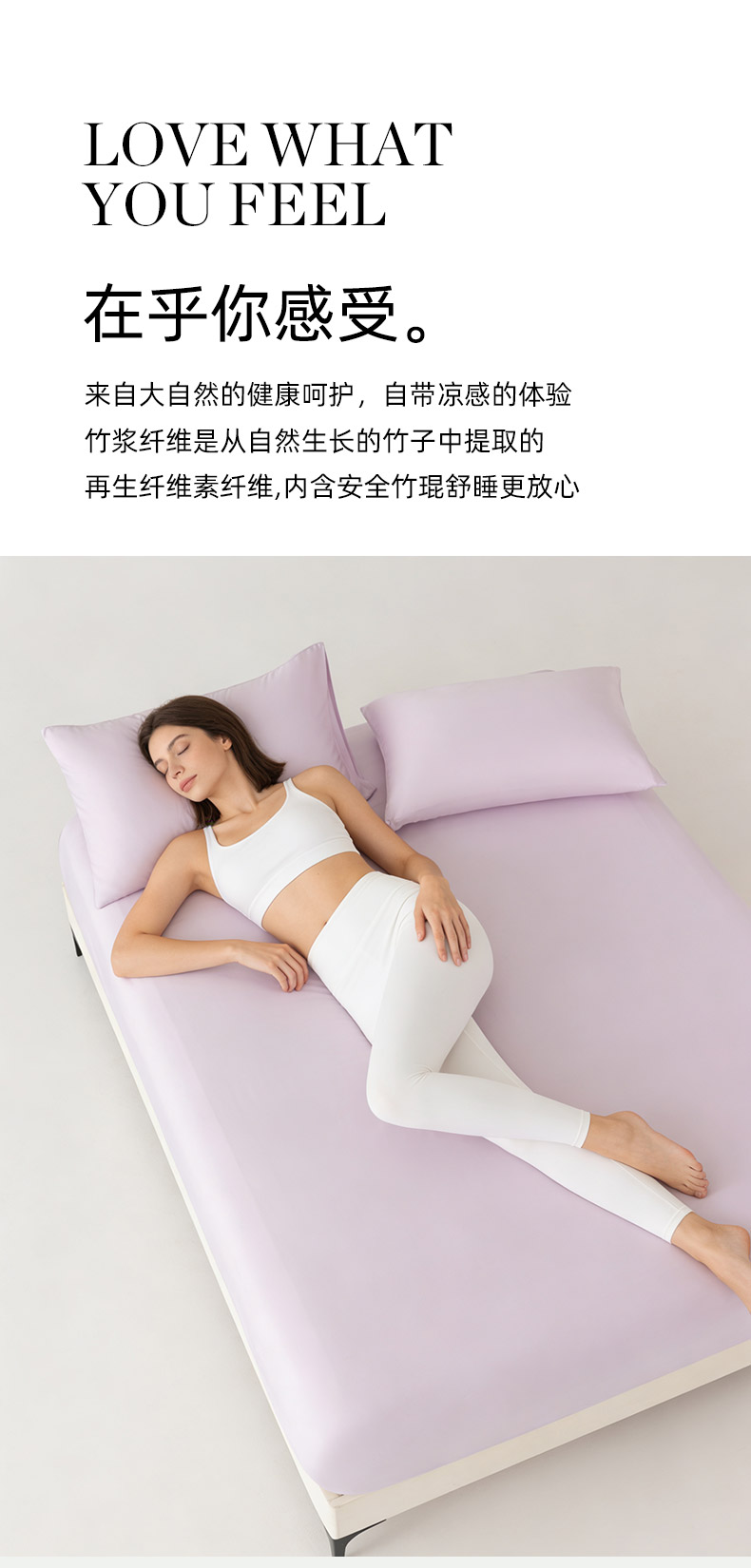 • 91家纺网 家纺一手货源 找家纺 (总)轩和家居 2026新款60支竹纤维四件套天竹A类婴幼儿级别天然抑菌,甜紫,奇异莓,淡绿,淡紫,奶咖,软玉,天蓝,椰灰