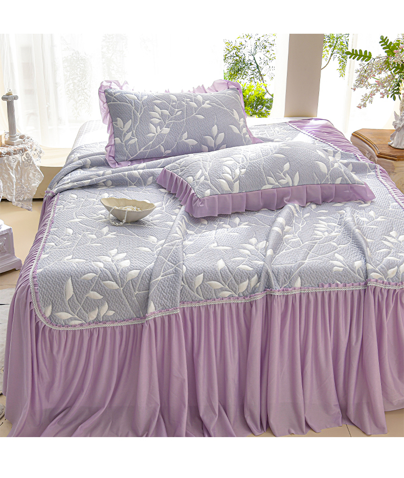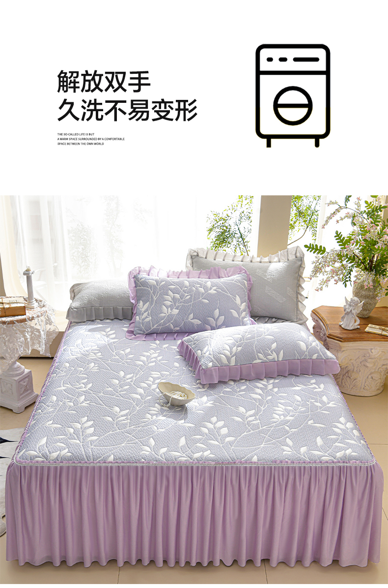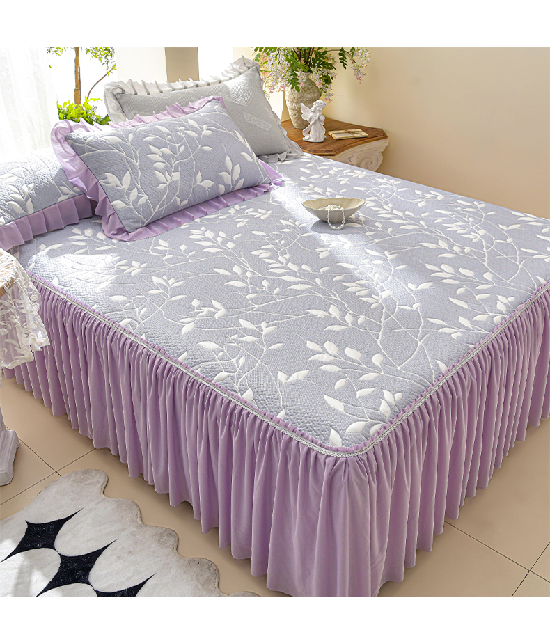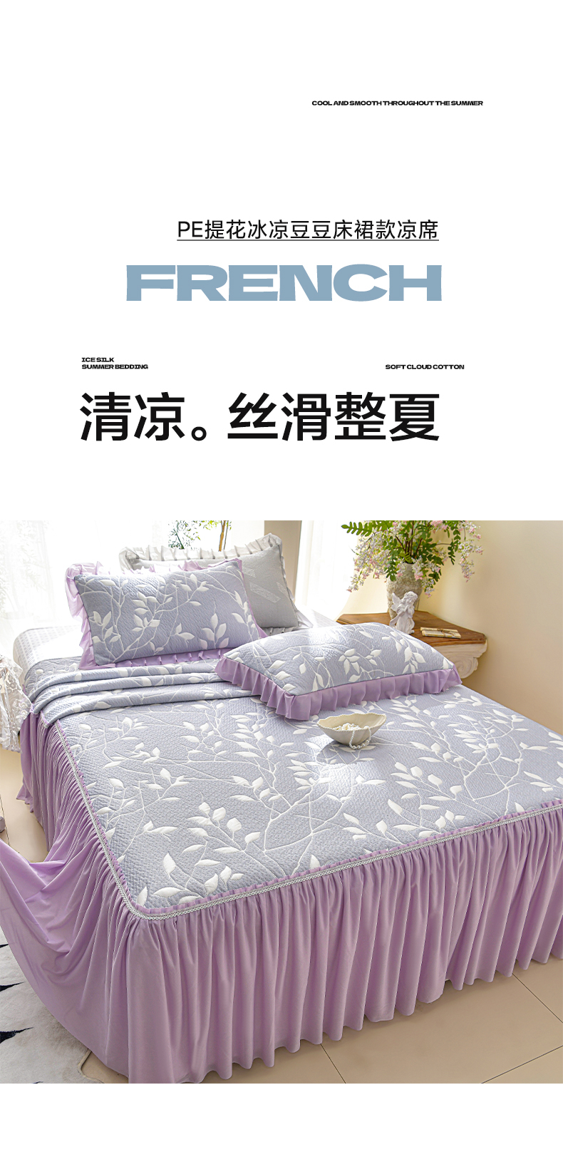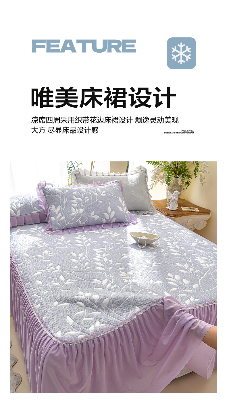 商品名称:绘萱家居 2026春夏新款530克PE100%提花冰凉豆豆床裙款凉席席子空调软席 花枝招展-紫