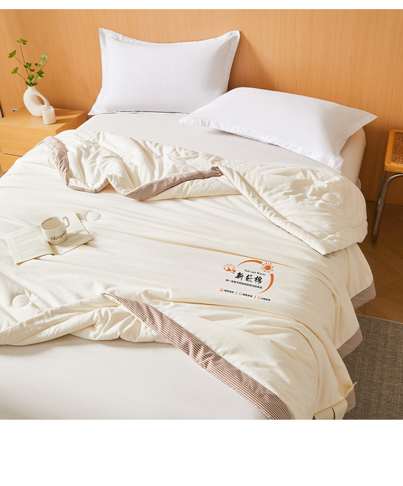 被子 > 夏被 > 初相识被业 2026新款无印风100%新疆棉花夏被空调被可机洗夏凉被棉花被子(提供质检报告买家秀) 风禾-米白