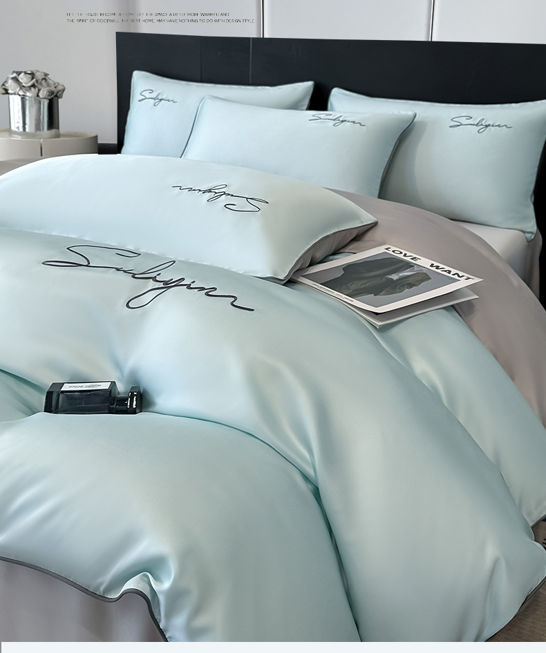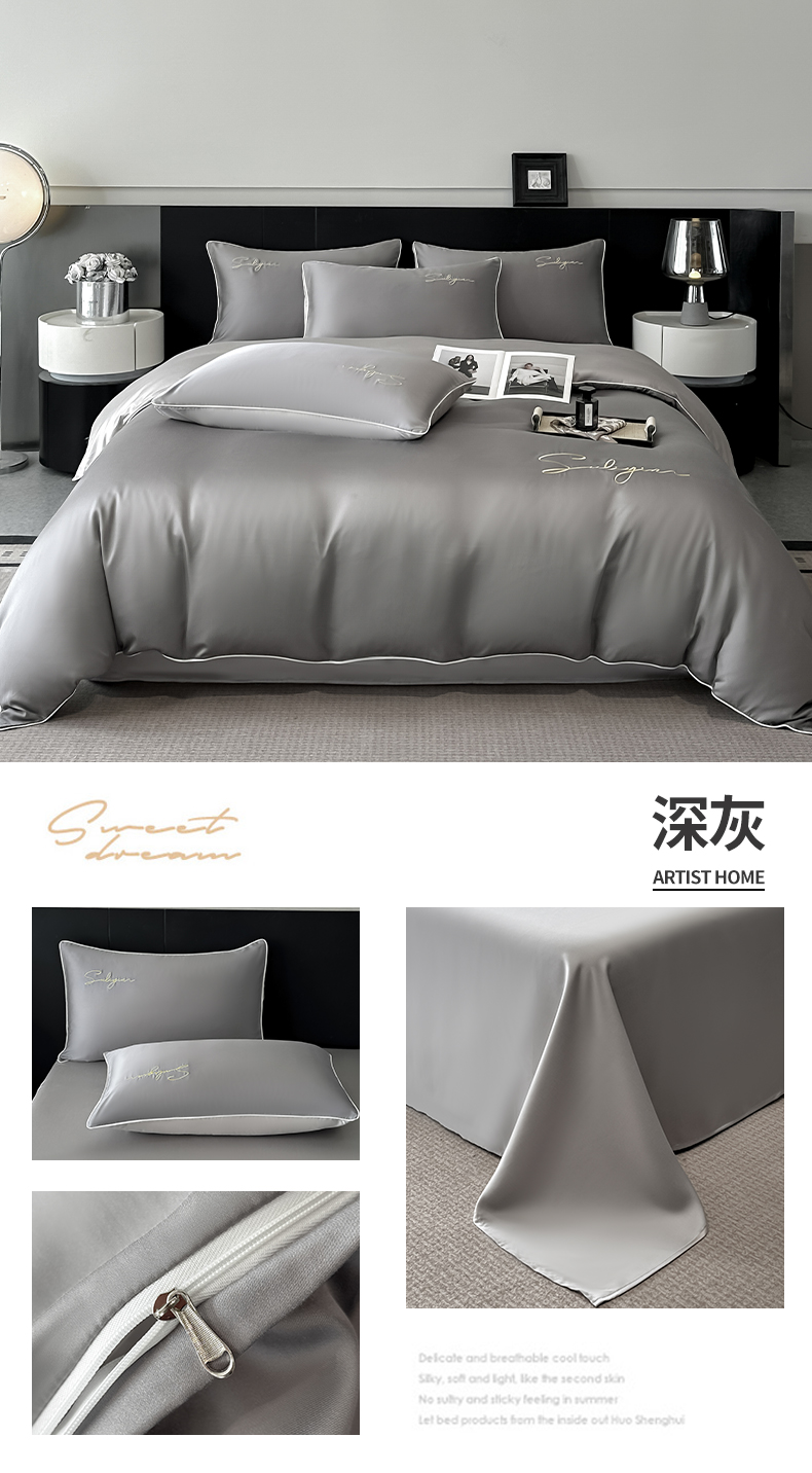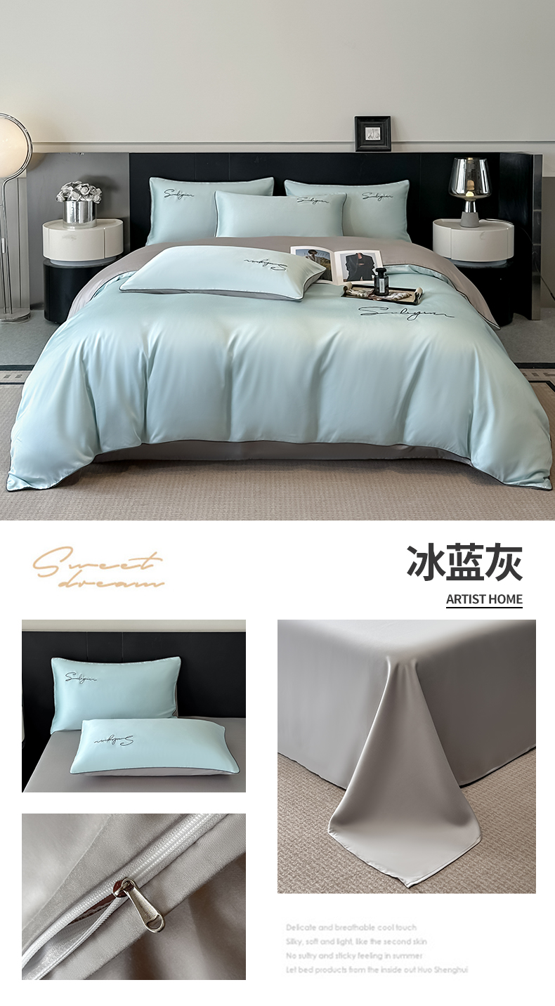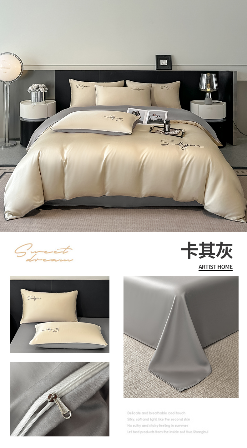 当前位置: 91家纺网 > 商品网购 > 床品套件 > 四件套 > 其它四件套 > 美澳家纺 2026新款凉感水洗冰丝真丝刺绣双拼单被套四件套 米白蜜桃