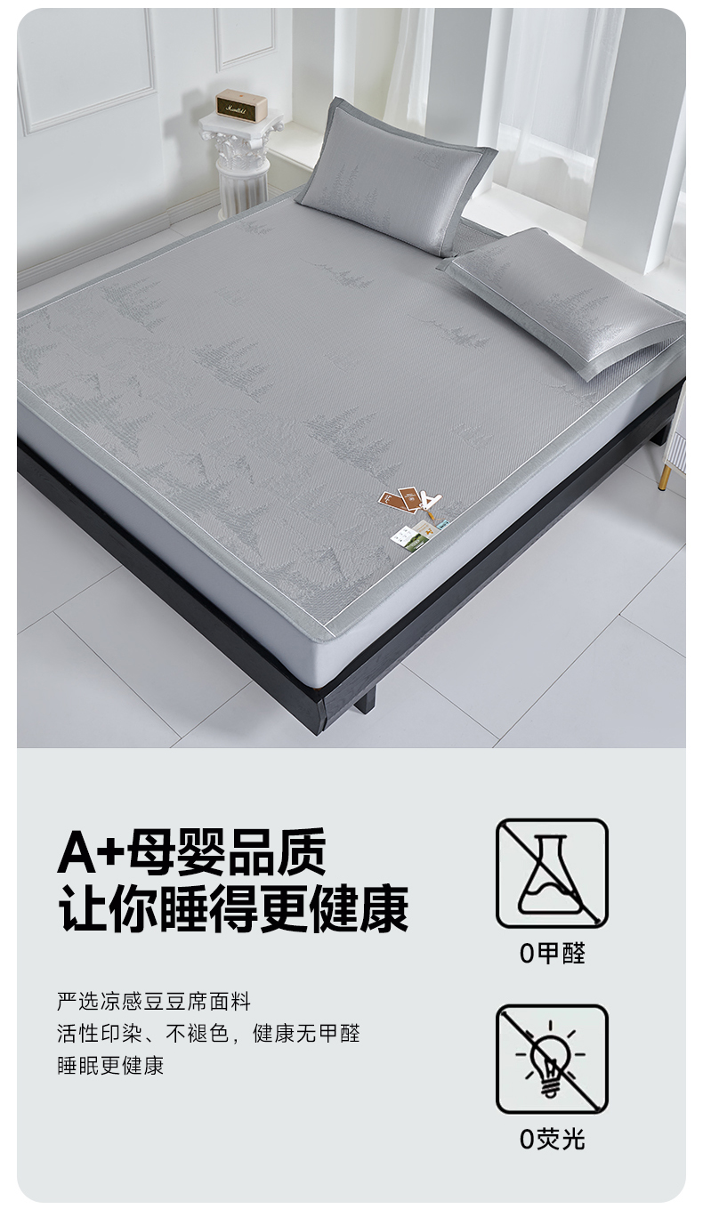 (总)小牛席业 2026新款雪山冷感豆豆席系列凉席藤席冰藤席竹席空调席草席冰丝席豆豆席乳胶席三件套,灰色,粉色,蓝色,绿色
