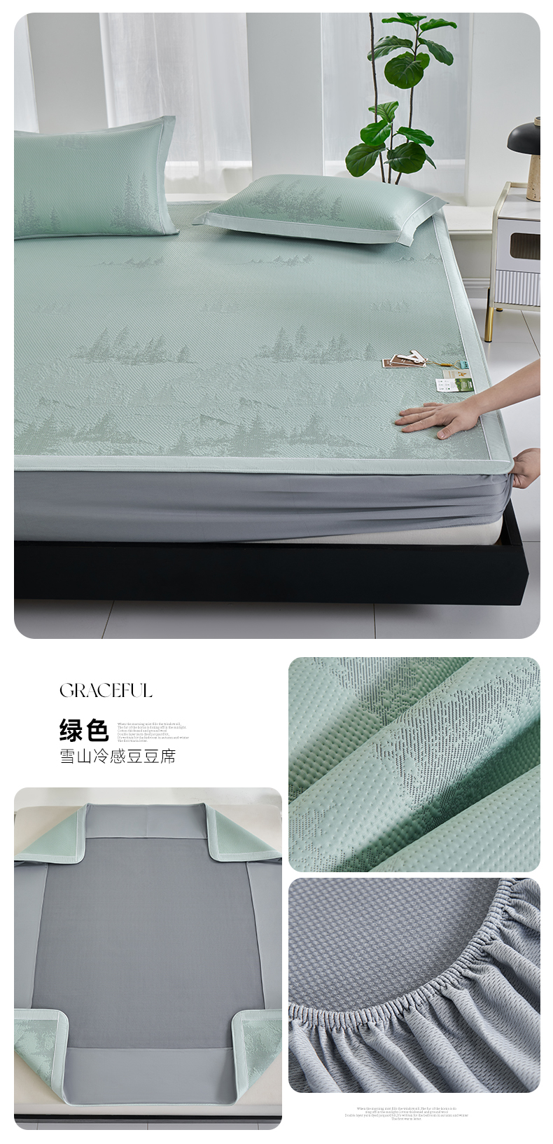 (总)2023新款超精密冰丝席-小斜纹系列-床笠款藤席凉席竹席,粉色,蓝色,绿色,银灰