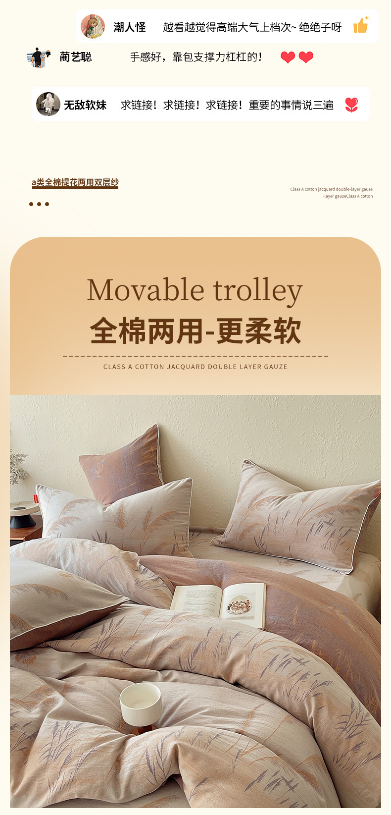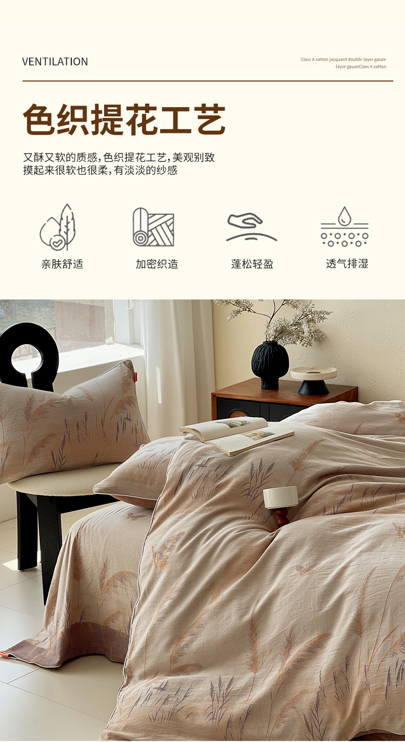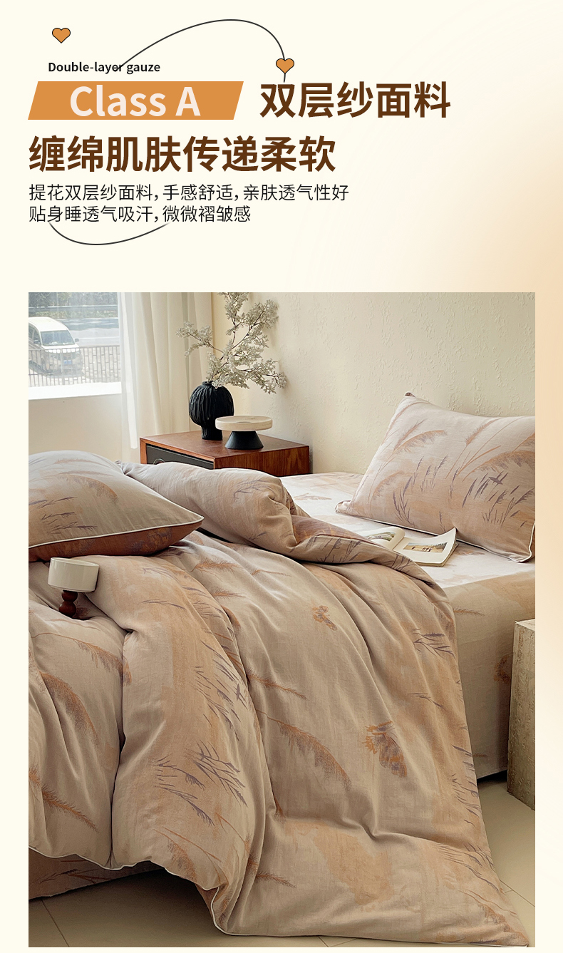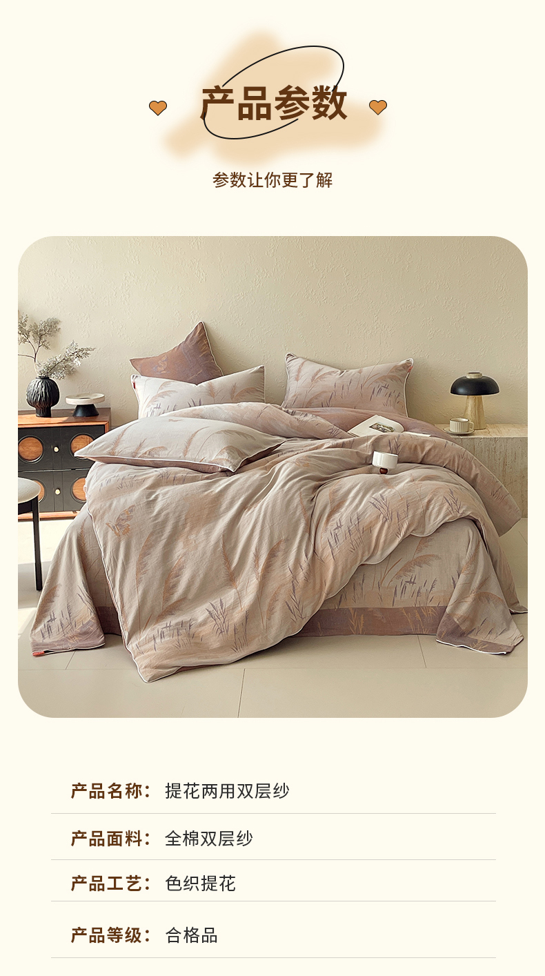 当前位置: 91家纺网 > 商品网购 > 床品套件 > 四件套 > 全棉普通四件套 > 春皖家纺 2026新款提花双层纱纯棉全棉四件套 瑾璃
