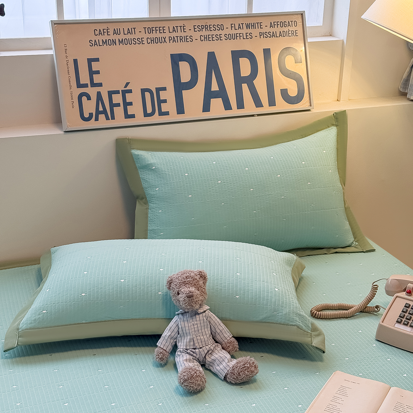 懒猫家纺 2026新款满天星绗绣莫兰迪色系床席床笠款凉席 生椰抹茶-床席款