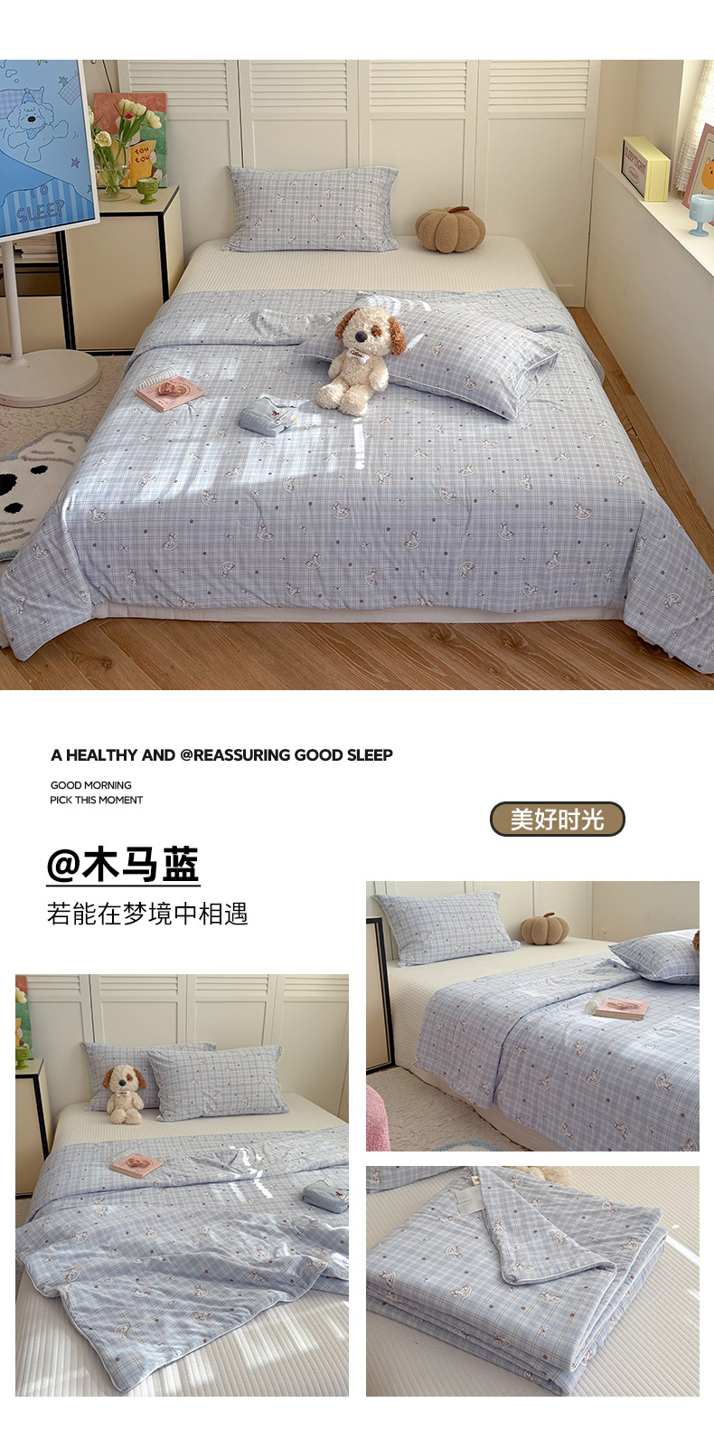 (总)金梦拉家纺 2026新款全棉花边系列泡芙纱泡泡纱夏被夏凉被空调被四件套,躲雨小兔,格格心动,花漾浅梦,木马小花团,浅蓝花照,青草録,柔韵粉樱,甜甜樱桃,雾蓝粉黛,小紫花免,紫色木马,白桃乌龙,薄荷爱心,初念粉,蝶栖柔花,费尔岛马,粉蓝KT,粉色蝴蝶结,红色星星,可爱小喵,满墙紫藤,木槿花,奶咖心动,浅咖南瓜,浅夏,浅夏花信,清浅,桃花朵朵,缤纷木马,条纹星星,包装图-仅供参考